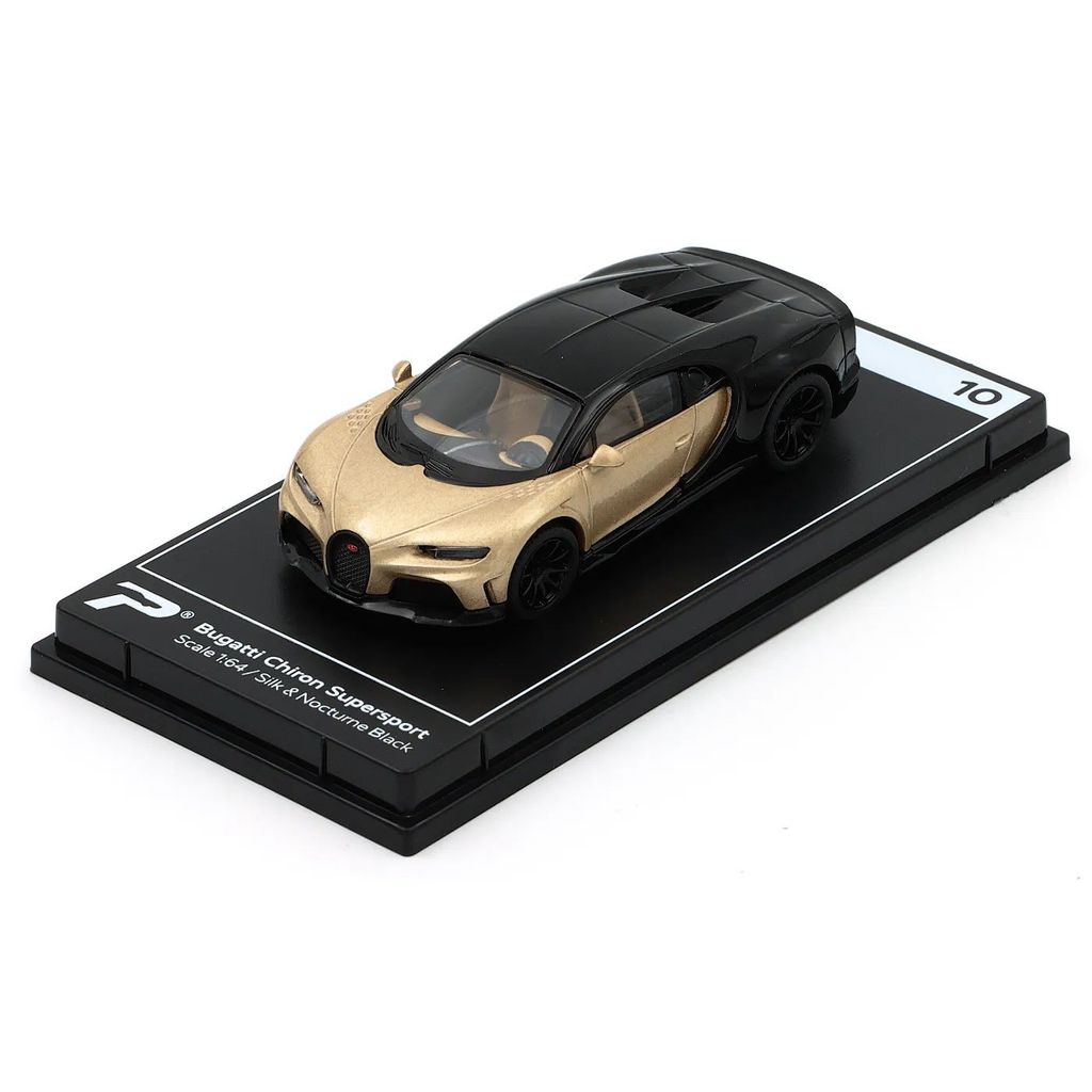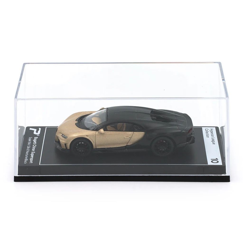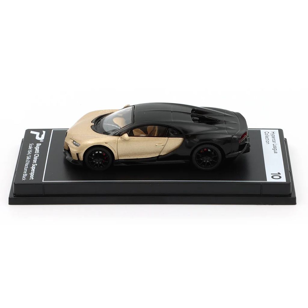 Bugatti Chiron Supersport i färgen Silk och Nocturne Black (guld/beige och svart) från modellbilstillverkaren PosterCars och deras serie Hypercar League Collection där denna Bugatti fått nummer 10.