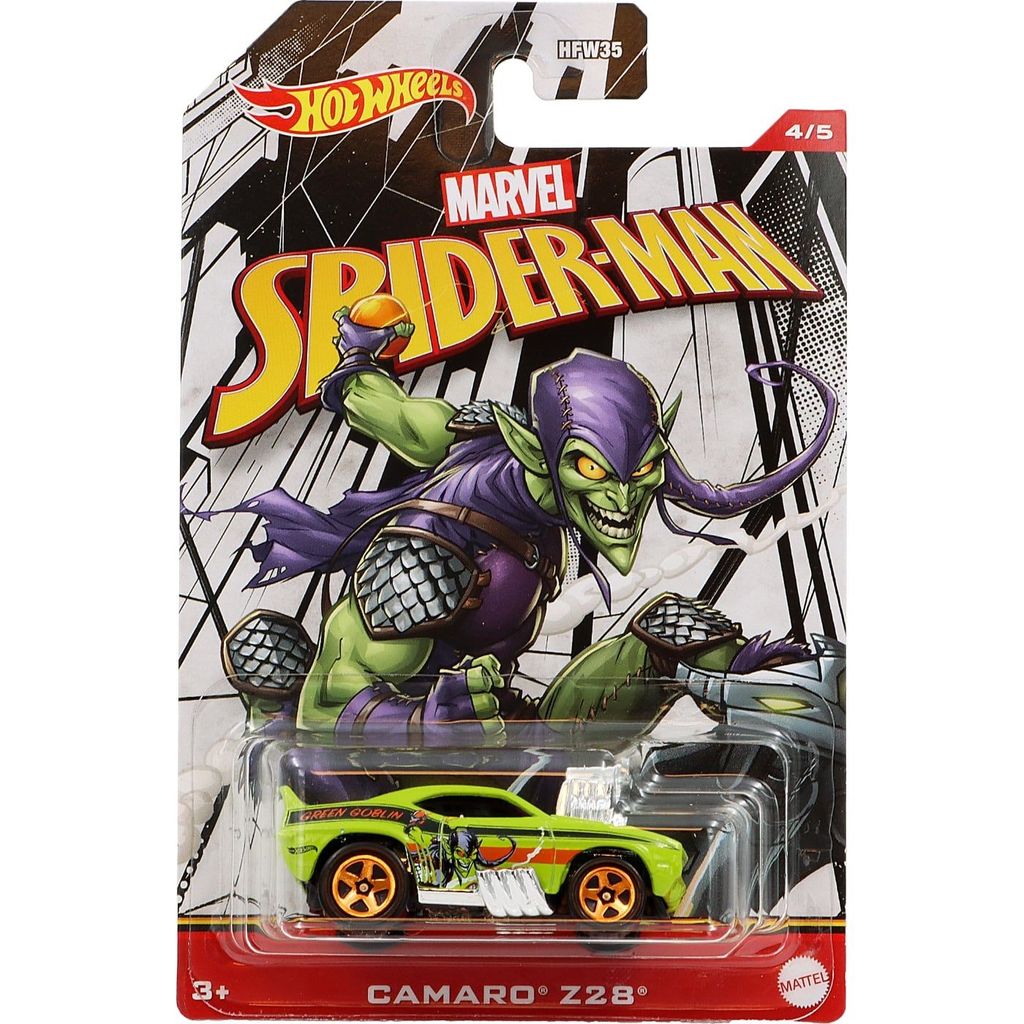 Grön ’69 Camaro Z28 från Hot Wheels serie Marvel - Spider-Man från 2022 där denna bil är nummer 4 av 5.