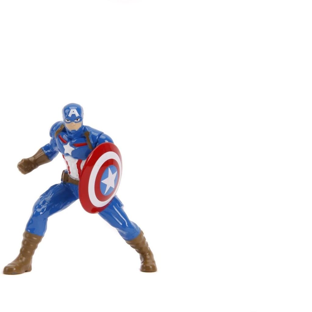 Forden har öppningsbara framdörrar, motorhuv och baklucka. Med bilen följer en Captain America samlarfigur.