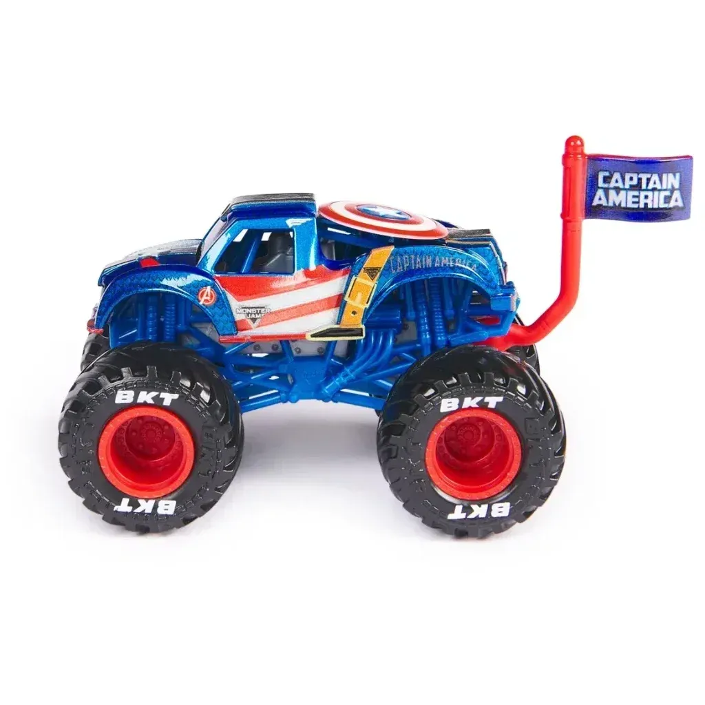 Monster Jam-trucken Captain America från Marvel som leksakstruck från Spin Master. Trucken är i skala 1:64 (9,5 cm lång) och är alltså en skalenlig modell av den verkliga trucken Captain America som körts och körs av bland annat förarna Chad Fortune, Carl Van Horn och Jon Zimmer.