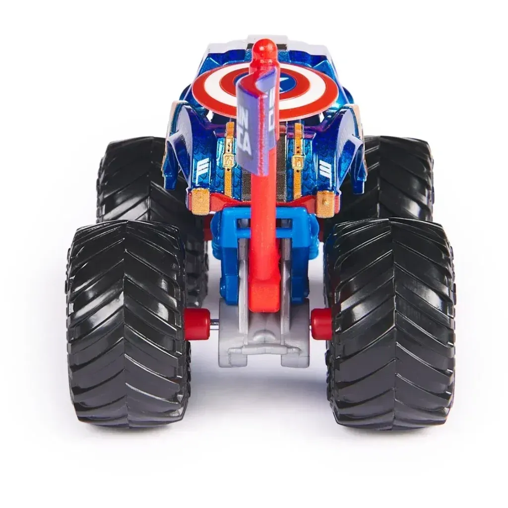 Monster Jam-trucken Captain America från Marvel som leksakstruck från Spin Master. Trucken är i skala 1:64 (9,5 cm lång) och är alltså en skalenlig modell av den verkliga trucken Captain America.