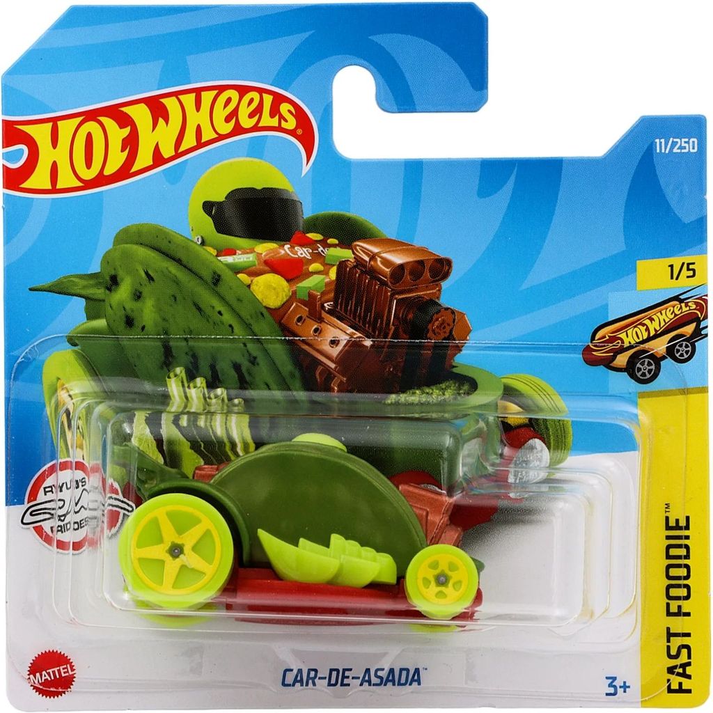 Car-De-Asada från Hot Wheels och serien Fast Foodie där denna leksaksbil är bil nummer 1/5. Bilen är nummer 11/250 från 2022 och har ett short card (5785).