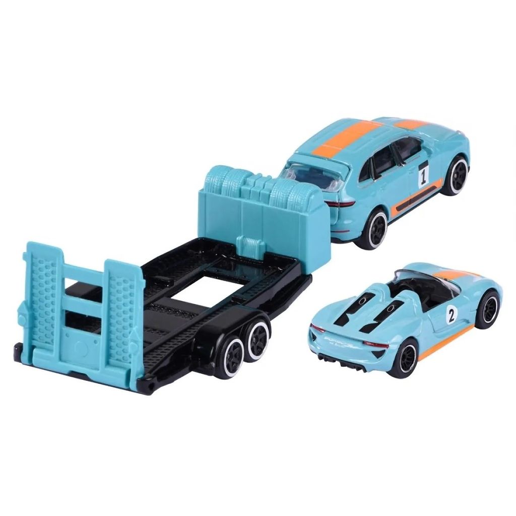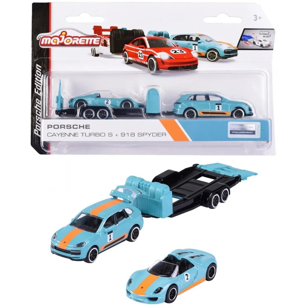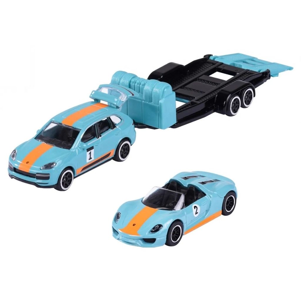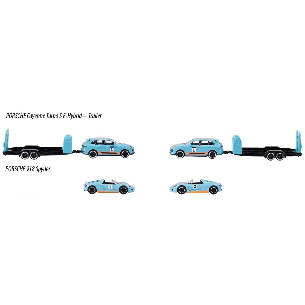 Porsche Cayenne Turbo S + Porsche 918 Spyder från Majorettes serie Porsche Edition, Race Trailer.