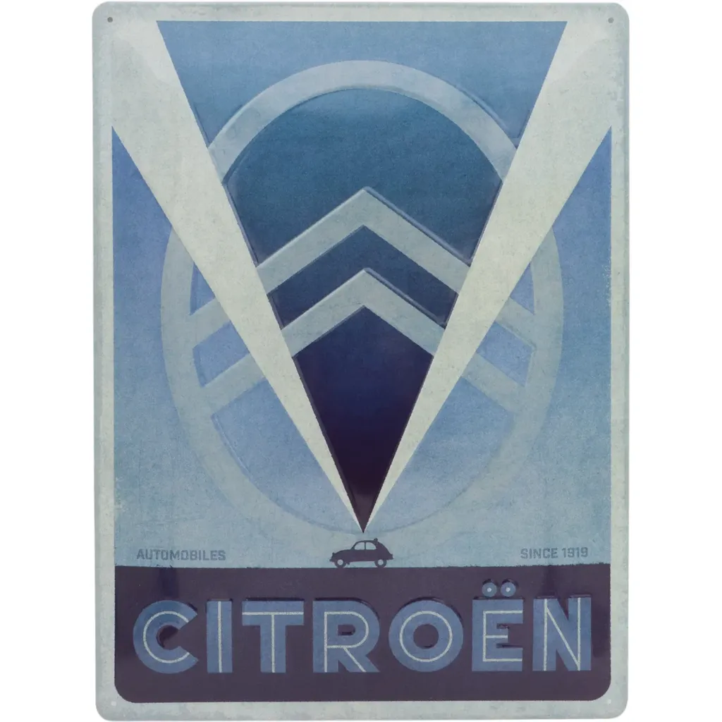 Plåtskylt med Citroëns logotyp och texten "Automobiles Since 1919".