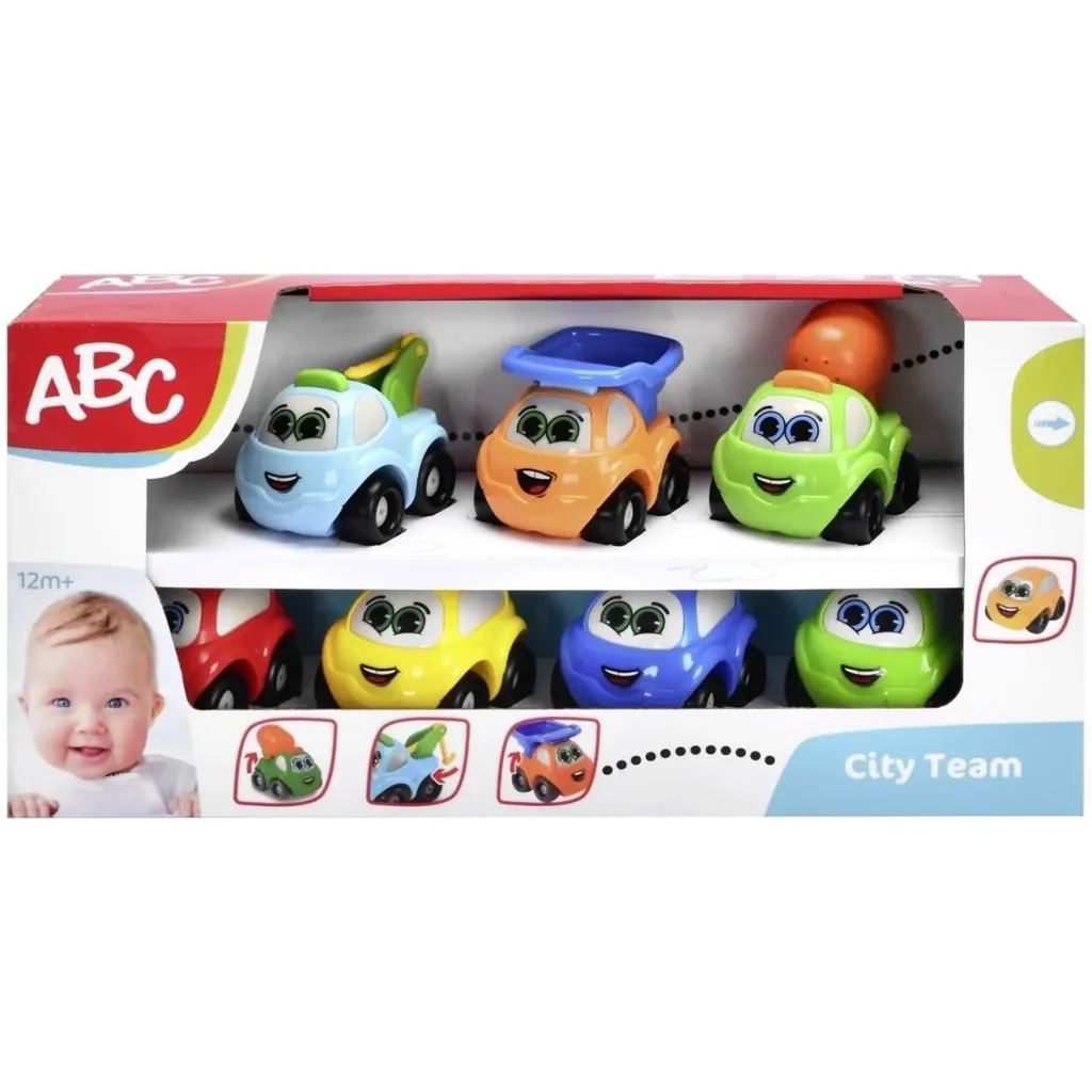 Set med småbilar för de allra minsta bilfantasterna. Setet City Team från ABC rekommenderas från 12 månader.