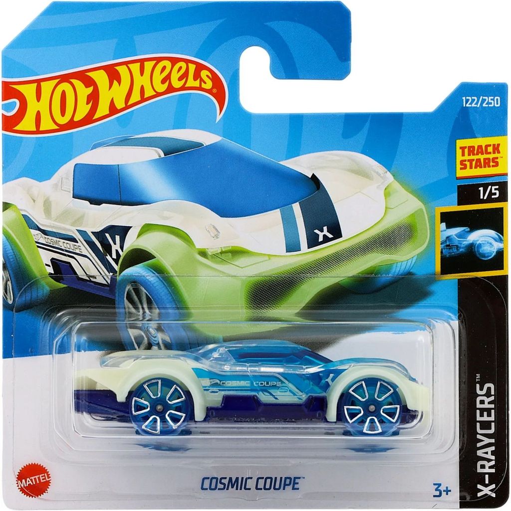 Cosmic Coupe från Hot Wheels och serien X-Raycers där denna leksaksbil är bil nummer 1/5. Bilen är nummer 122/250 från 2022 och har ett short card (5785).