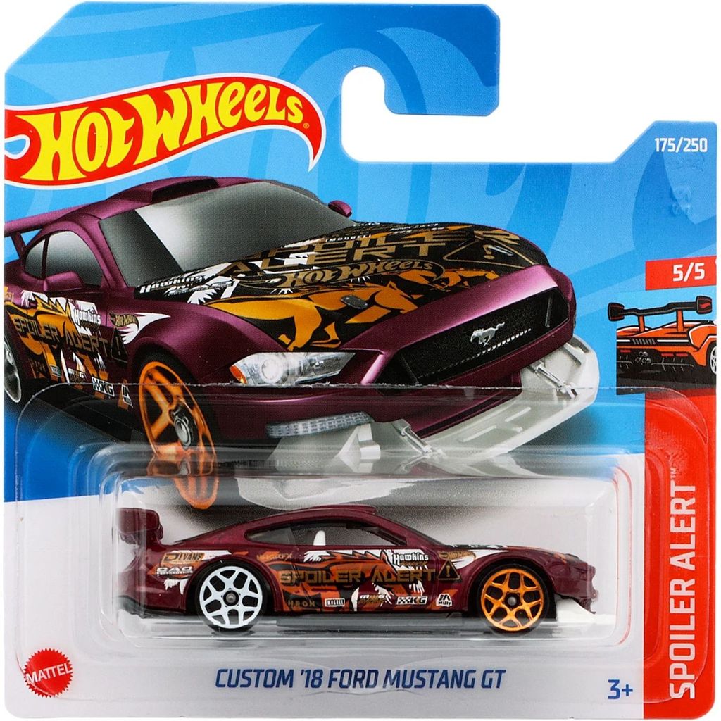 Custom ?18 Ford Mustang GT från Hot Wheels och serien Spoiler Alert där denna leksaksbil är bil nummer 5/5. Bilen är nummer 175/250 från 2022 och har ett short card (5785).