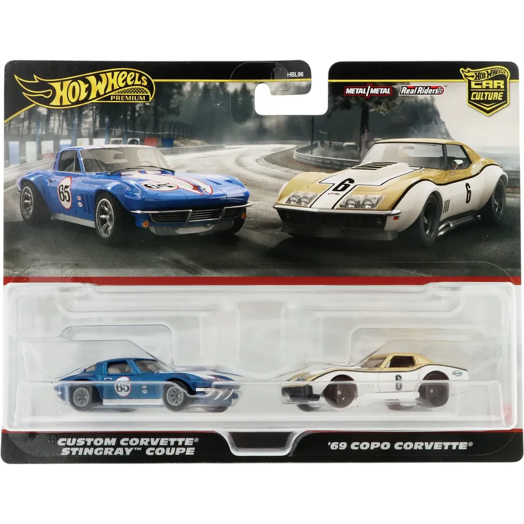 Custom Corvette Stingray Coupe (C3) + '69 Copo Corvette (C3) i ett dubbelpack från Hot Wheels och serien Car Culture (Mix 3, 2024).