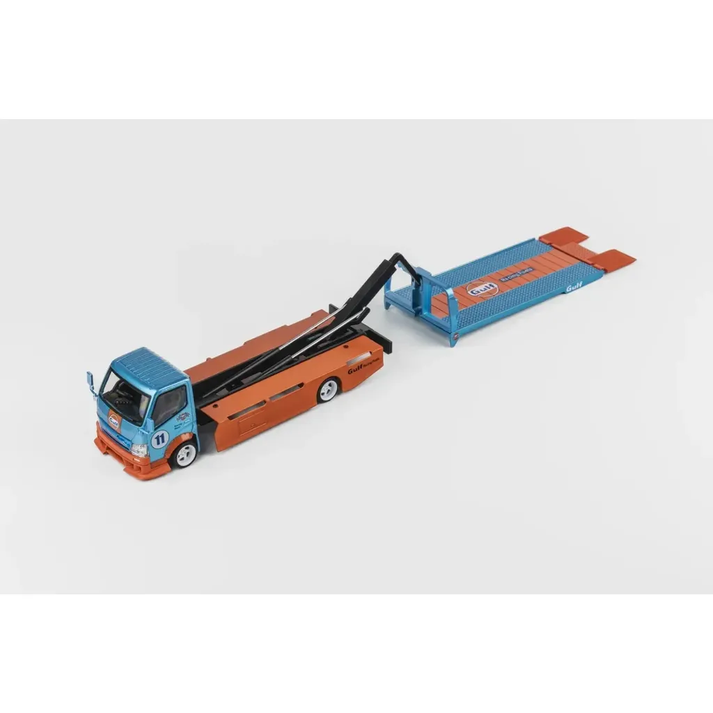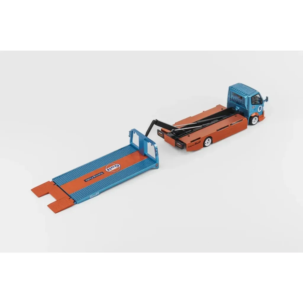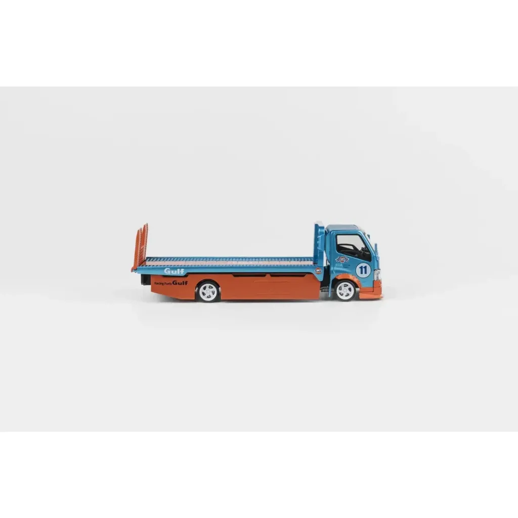 Custom Flatbed Tow Truck med Gulf-livery som modellbil från Micro Turbo i skala 1:64.