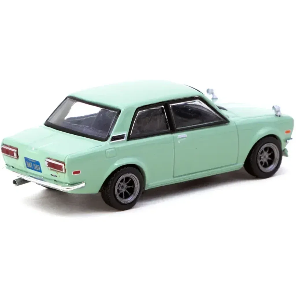 Ljusgrön Datsun 510 från Tarmac Works i skala 1:64 (6,5 cm). Bilen ingår i Tarmacs serie ROAD64.