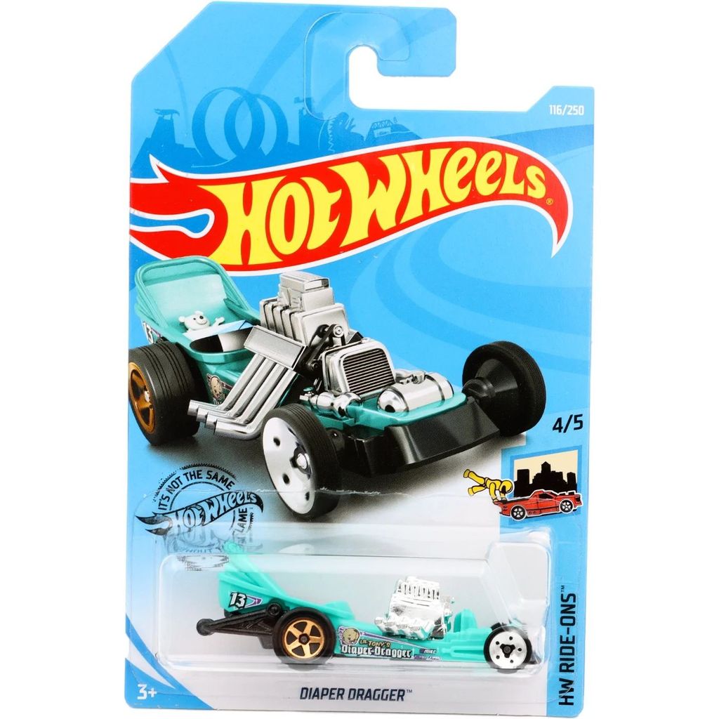 Diaper Dragger från Hot Wheels och serien HW Ride-Ons där denna leksaksbil är bil nummer 4/5. Bilen ingår i L-case "international long cards" (C4982) 2019.