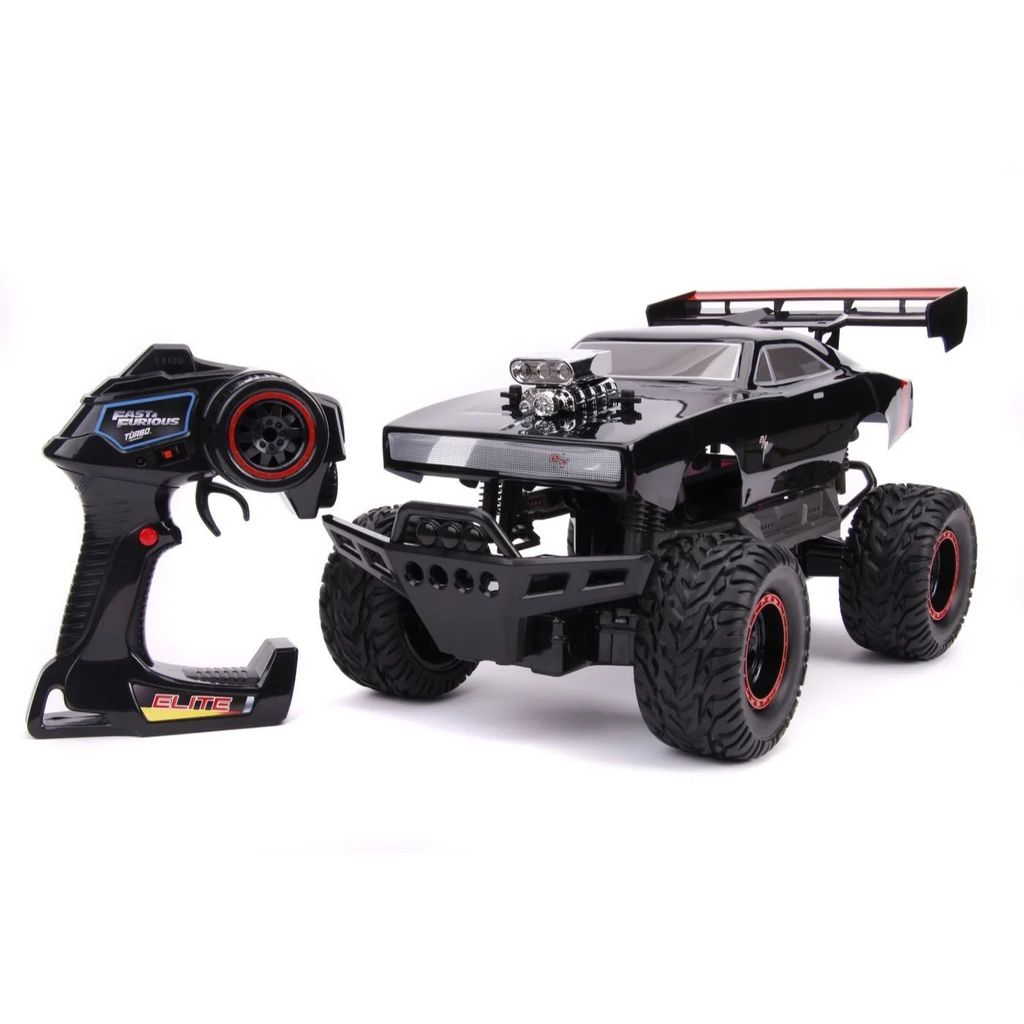 Dom’s Dodge Charger R/T, årsmodell 1970, i offroad-version som radiostyrd bil från Jada Toys.
