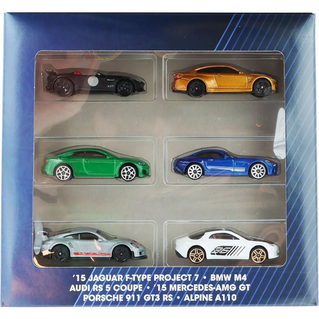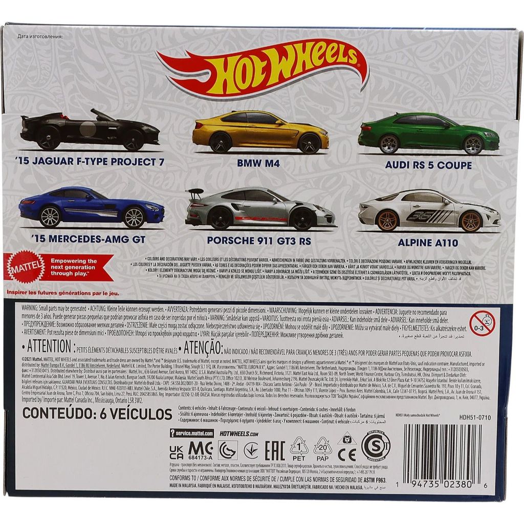 6-pack med bilar från Hot Wheels med europeiska bilar.