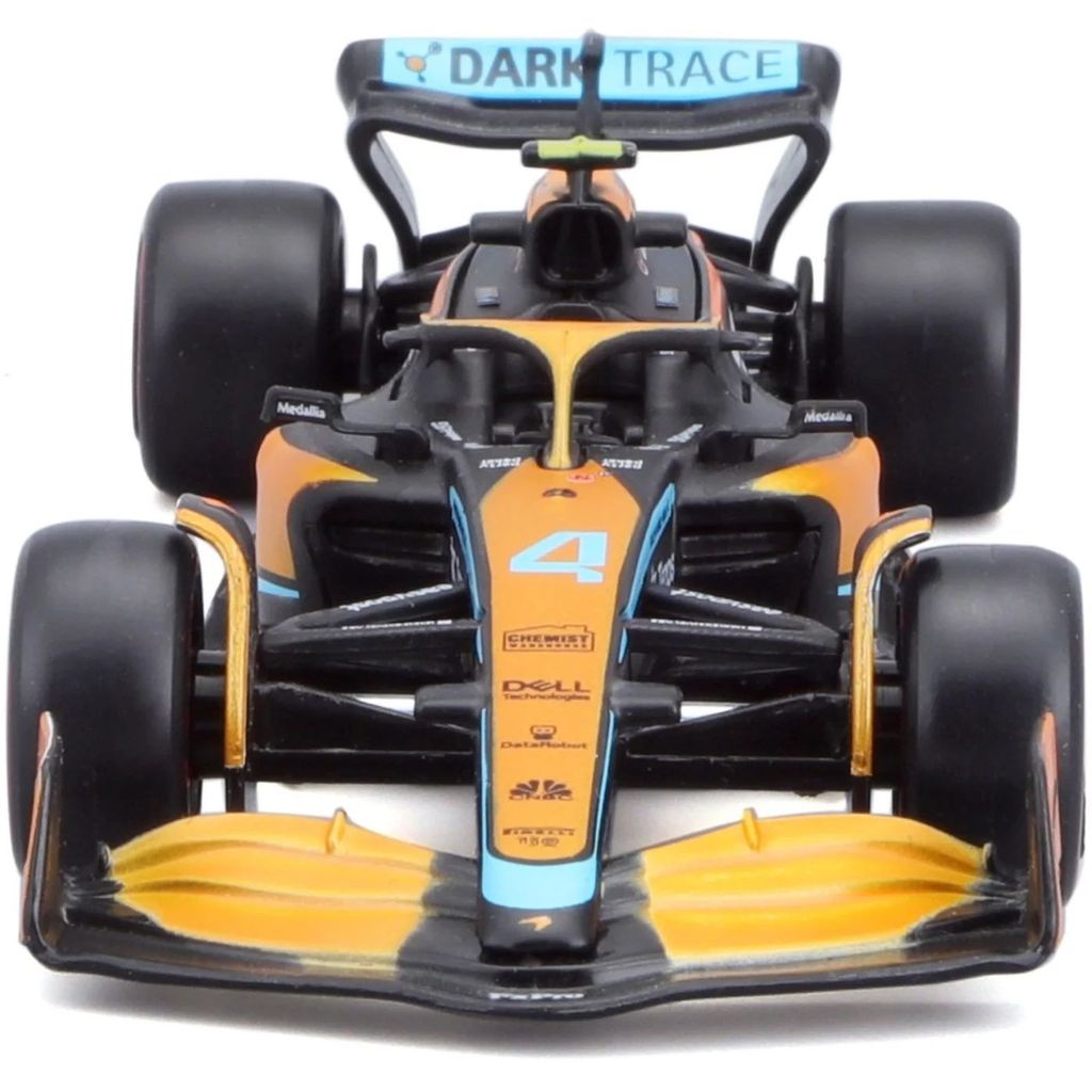 Modell av formel 1-bilen MCL36 från McLaren. Denna bil, med nummer 4, kördes säsongen 2022 av Lando Norris som slutade på sjunde plats med 122 poäng under säsongen. Bilen ingår i teamet McLaren Formula 1 Team från Storbritannien.