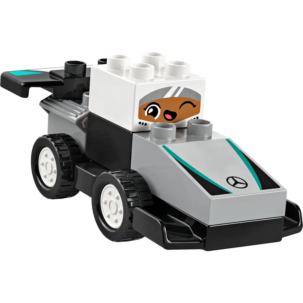 Bygget rekommenderas från 2 år och består av 70 DUPLO-klossar. Produkten är officiellt licensierad av Formula 1.