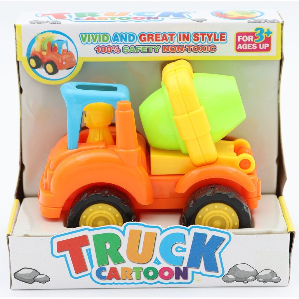Cementbil i glada färger med en cementblandare som går att tippa.
