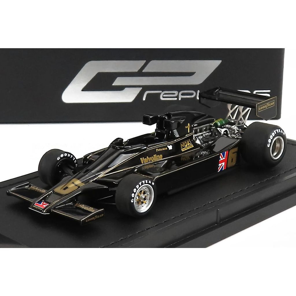 Felmärkt F1-bil från GP Replicas. Ronnie Petersons bil men felmärkning på emblem och ask. Läs mer nedan.
