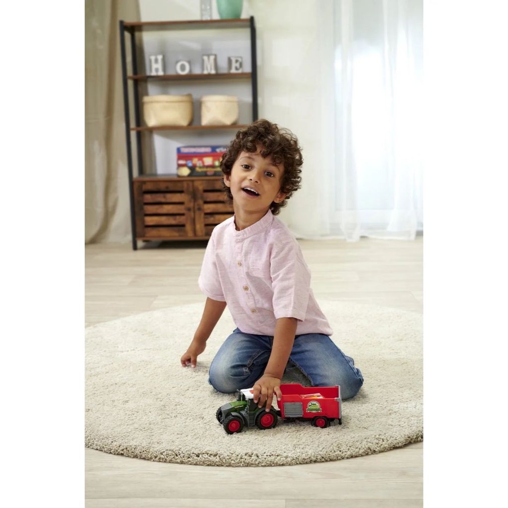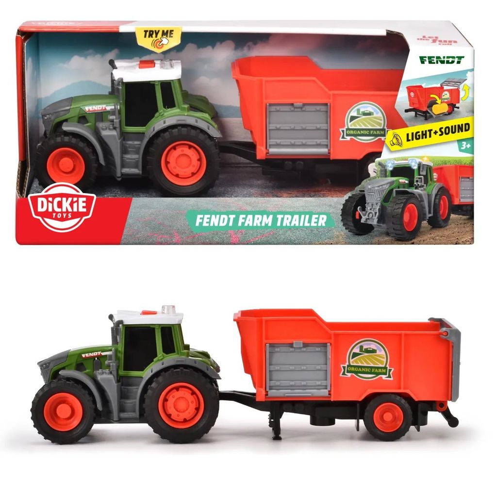 Fendt-traktor med öppen trailer (fodervagn) och ljud och ljus från Dickie Toys.