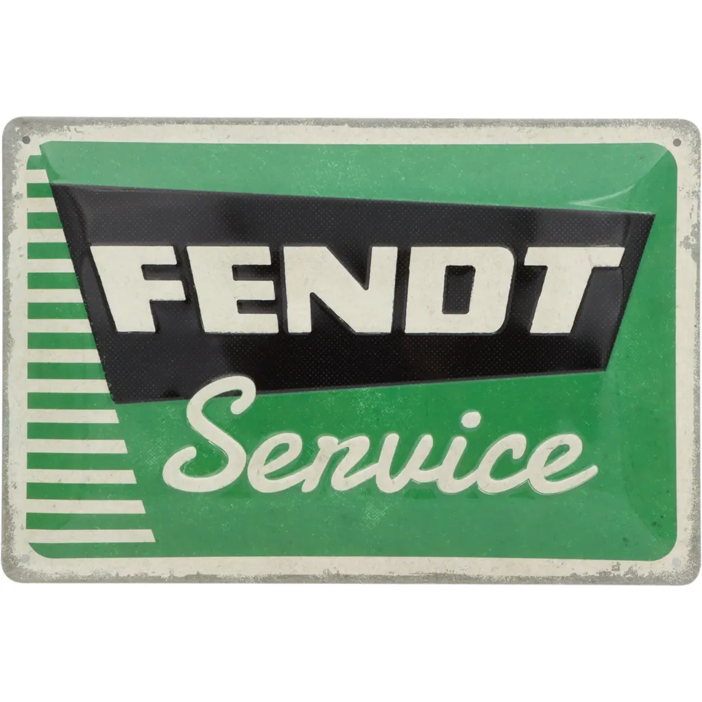 Plåtskylt med Fendts logga och texten "Fendt Service". Skylten är 20 x 30 cm.