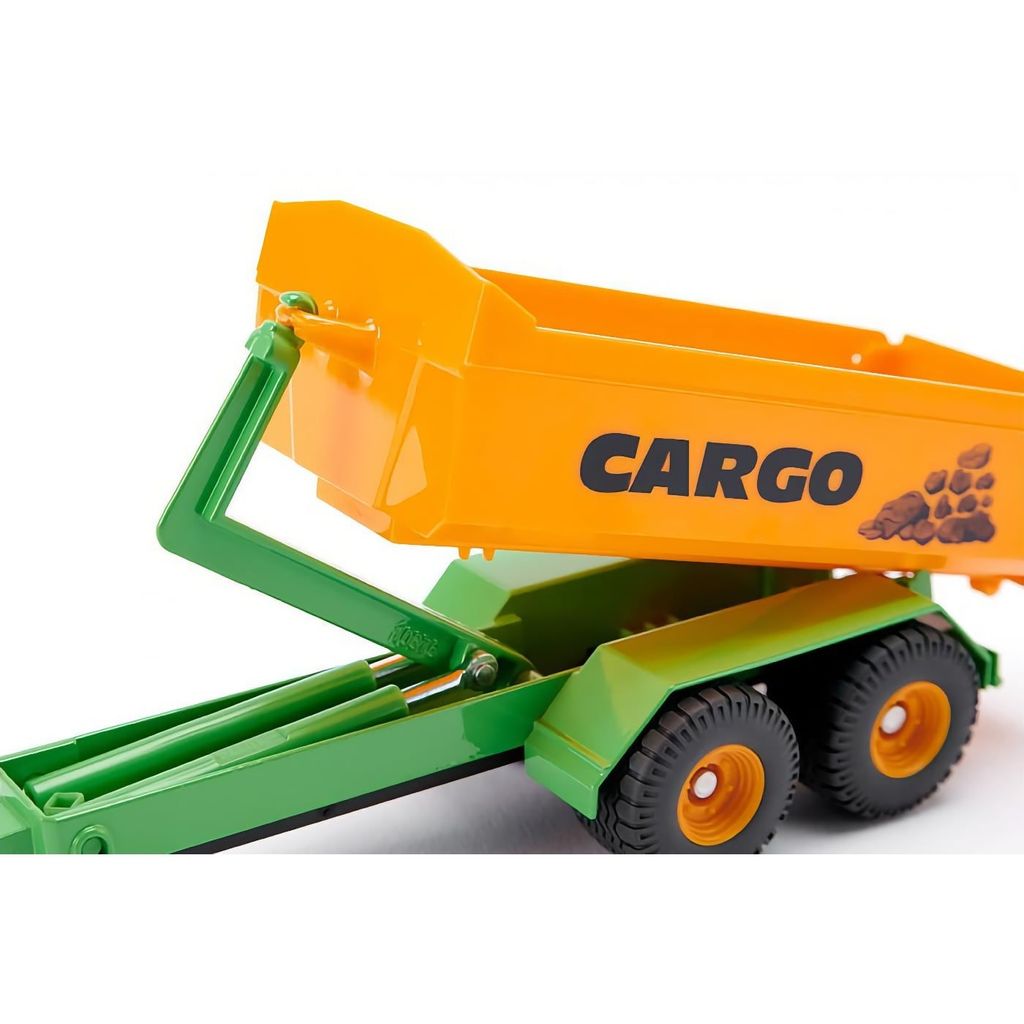 Traktor, Fendt Vario 942, som drar en trailer med lastväxlare med tillhörande gult flak. Ekipaget är i skala 1:50 vilket i detta fall innebär en längd på 27 centimeter för traktor med trailer.