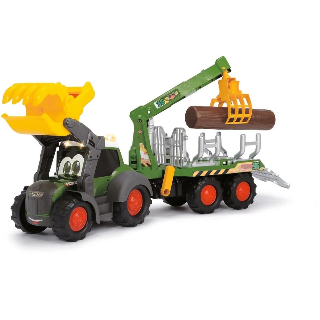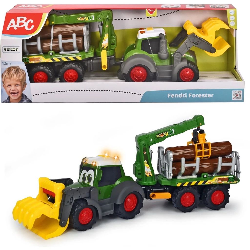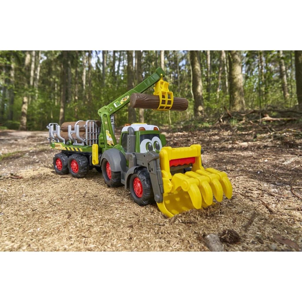 För de allra minsta erbjuder vi här en stor traktor med timmervagn. Traktorn är en Fendt och produkten är givetvis licensierad av Fendt.