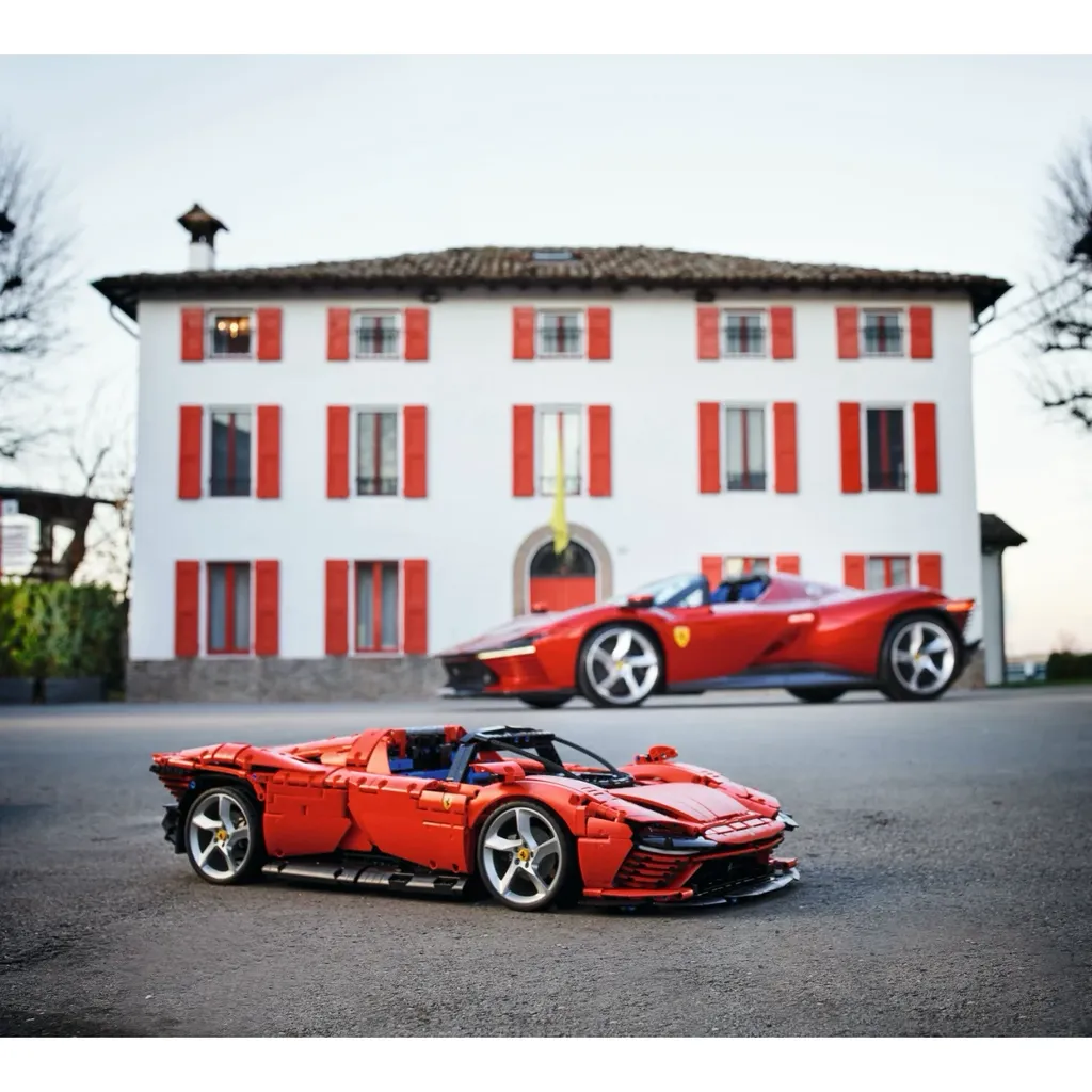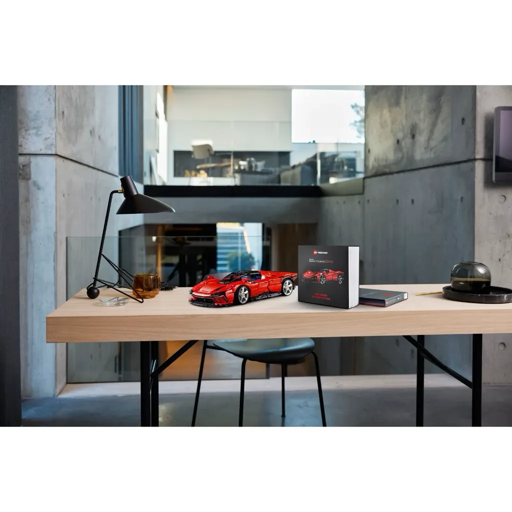 Ferrari Daytona SP3 i klassisk röd färg från LEGO och serien Technic Ultimate Car Concept som är en serie med superbilar som samlarmodeller där några av världens lyxigaste fordon stått modell för LEGO-bygget. Bilen blir färdigbyggd hela 59 cm lång, 25 cm bred och 14 cm hög (skala 1:8).