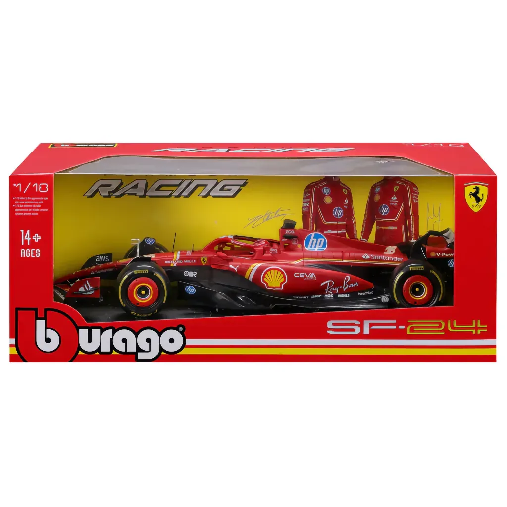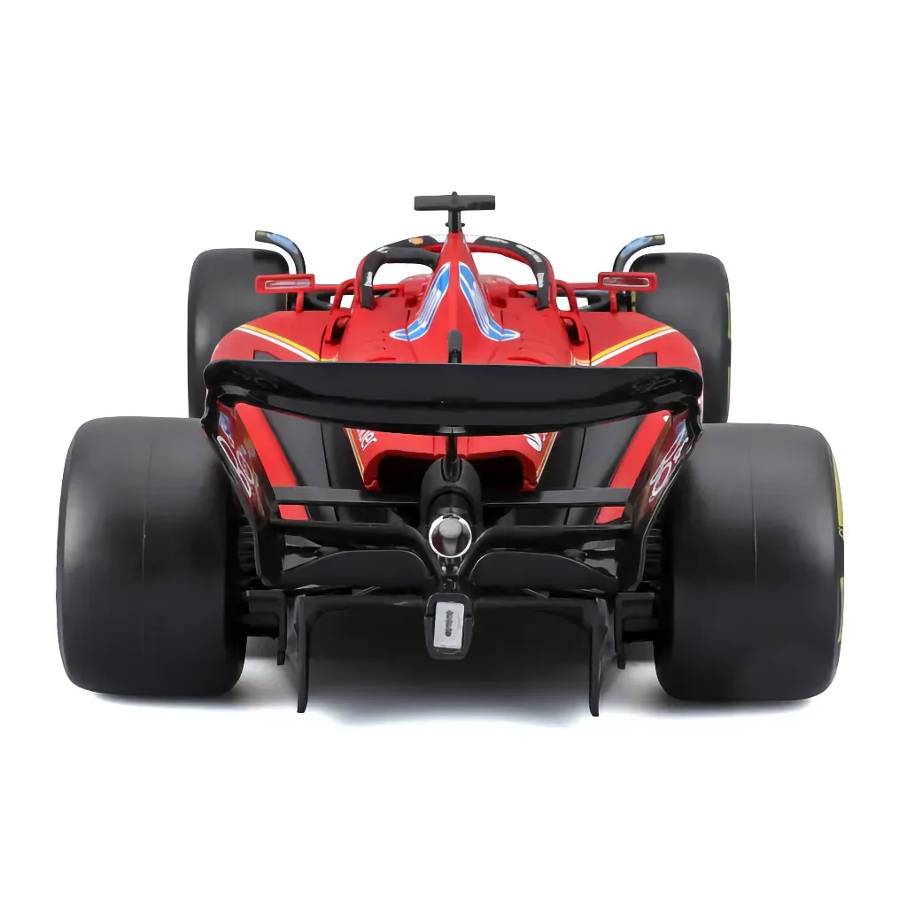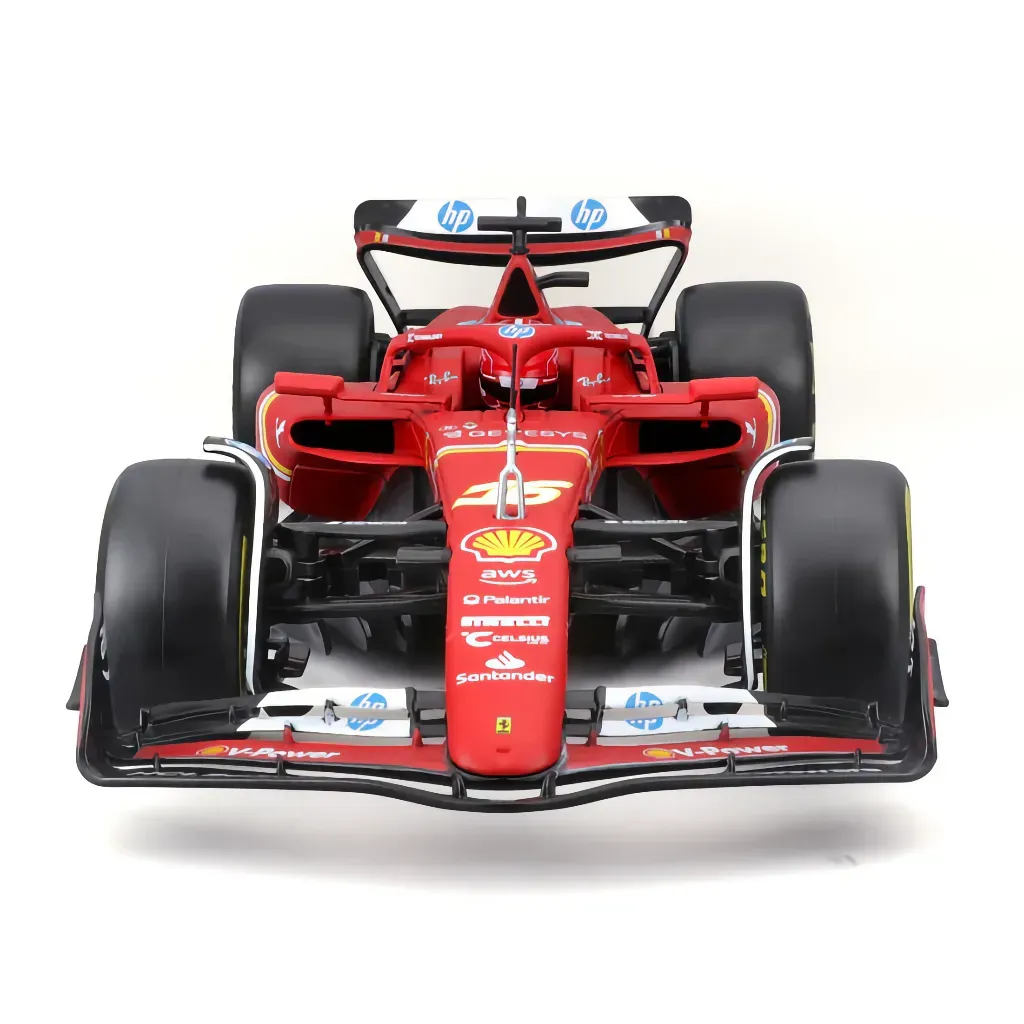 Ferrari SF-24 med nummer 16 kördes av Charles Leclerc under säsongen 2024. Den här modellbilen är tillverkad av Bburago i skala 1:18 vilket innebär att den är 32 cm lång.