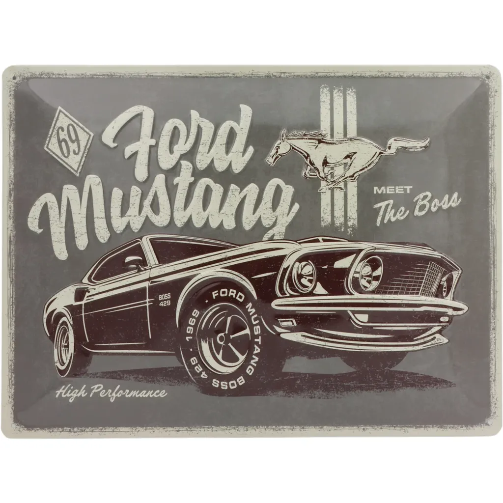 Plåtskylt med motiv av en Ford Mustang Boss 429.