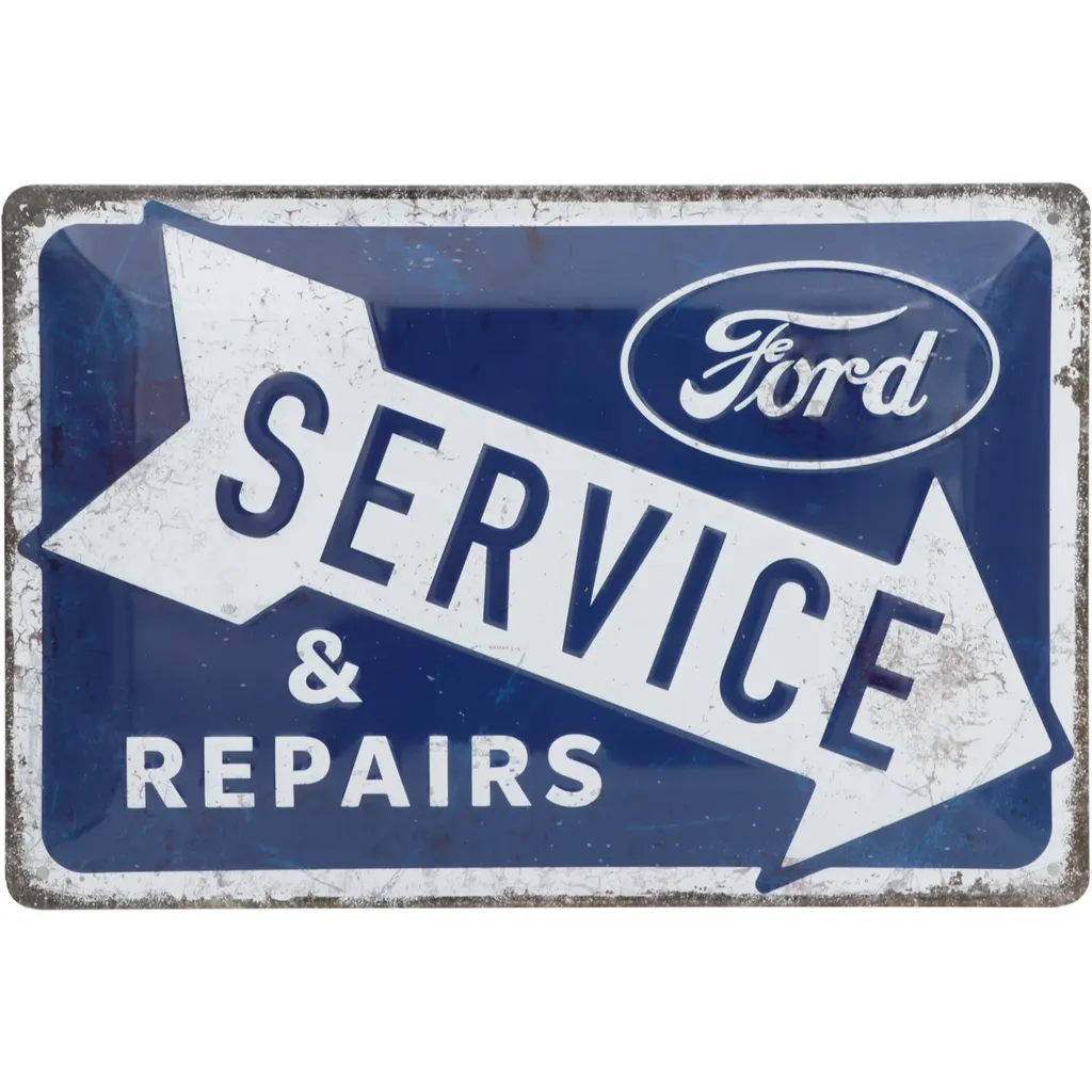 Plåtskylt med Fords logga och texten "Ford Service & Repairs".