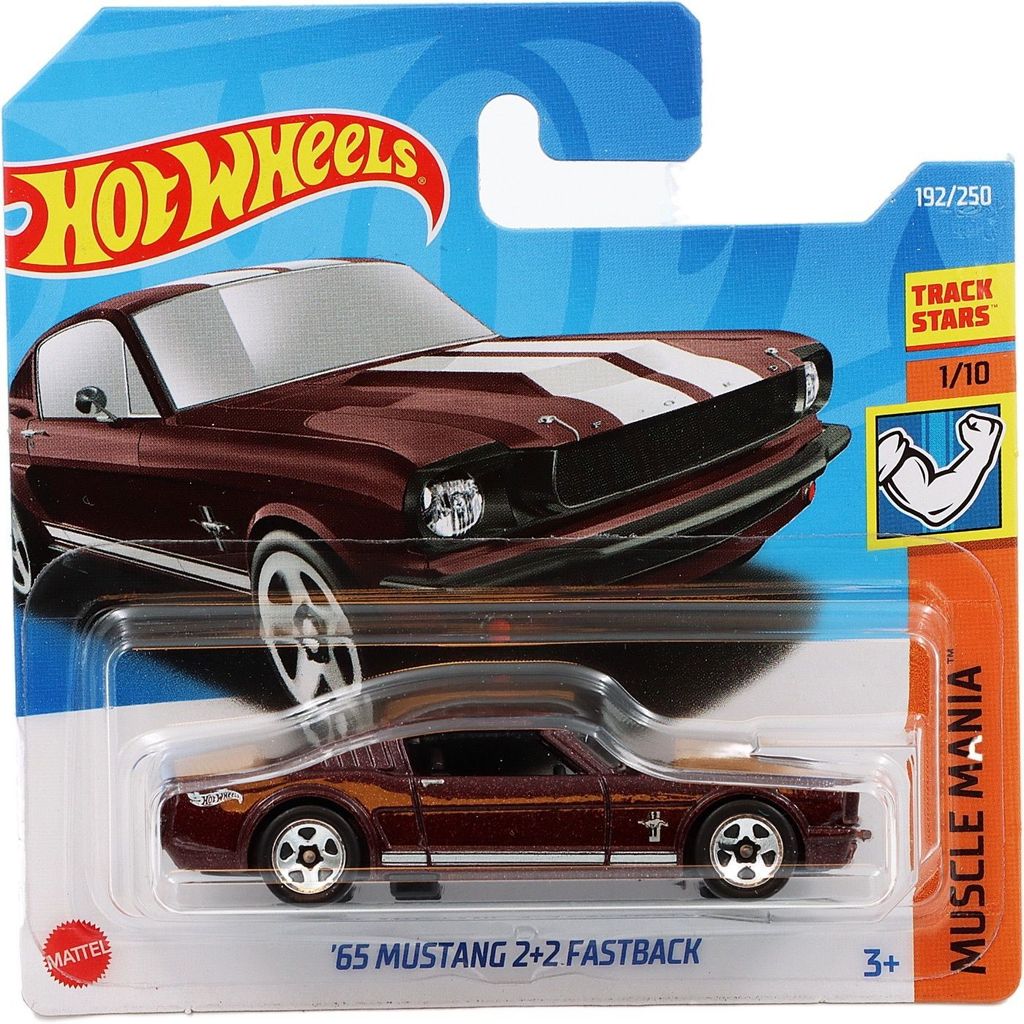 ?65 Mustang 2+2 Fastback från Hot Wheels och serien Muscle Mania där denna rödbruna (metallic) Mustang Fastback är bil 1/10.