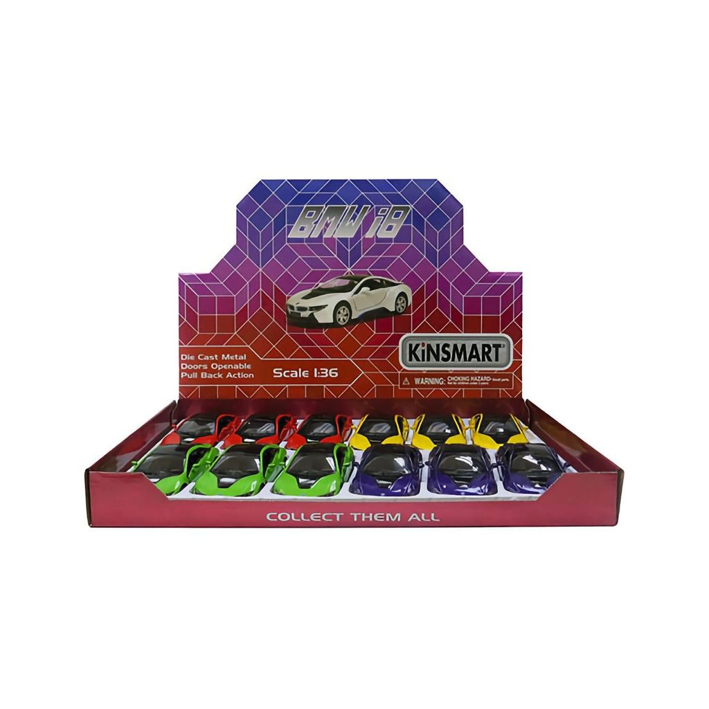 Leksaksbilstillverkaren Kinsmart har tagit fram denna fina BMW i8 i skala 1:36 vilket blir 12,5 cm leksaksbil i det här fallet.