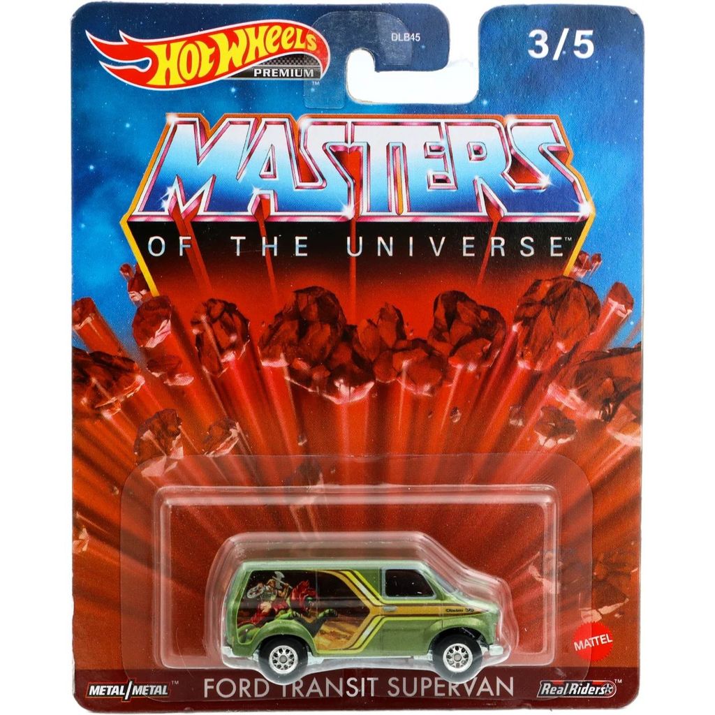 Grön Ford Transit Supervan från Hot Wheels med tema Masters of the Universe. Bilen ingår i setet Pop Culture: Mattel Brands från 2022, där denna Ford Transit är bil nummer 3 av 5.