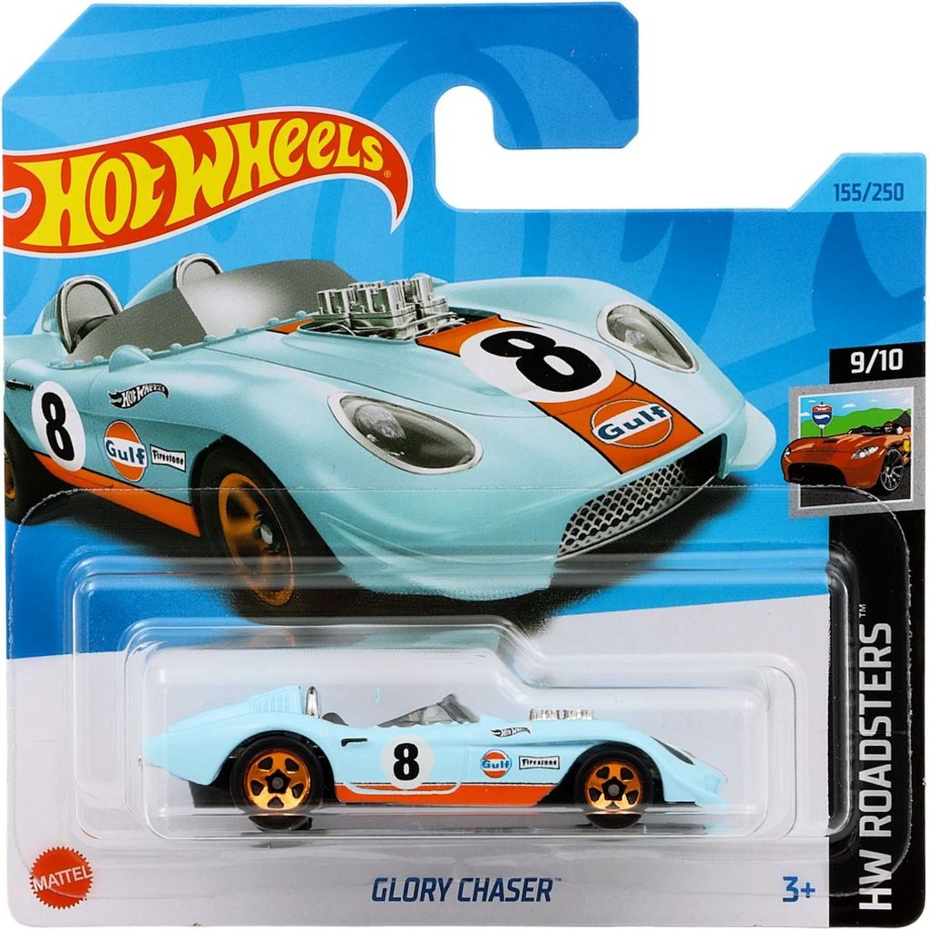 Glory Chaser från Hot Wheels och serien HW Roadsters där denna leksaksbil är bil nummer 9/10. Bilen är nummer 155/250 från 2023 och har ett short card (5785).