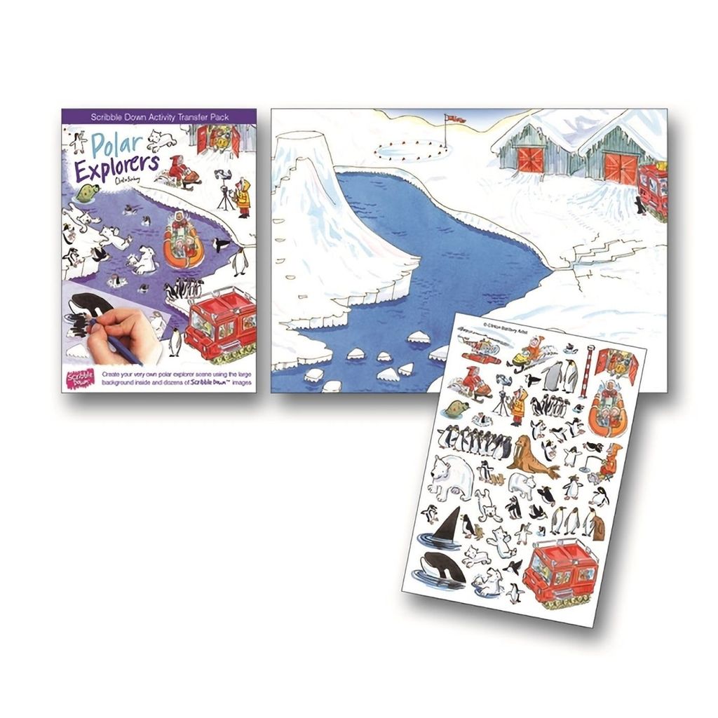 Gnuggisar från engelska varumärket Scribble Down. Gnuggisarna "gnuggas" på bakgrunden och den som gnuggar på de olika figurerna och objekten kan således skapa sitt eget motiv.