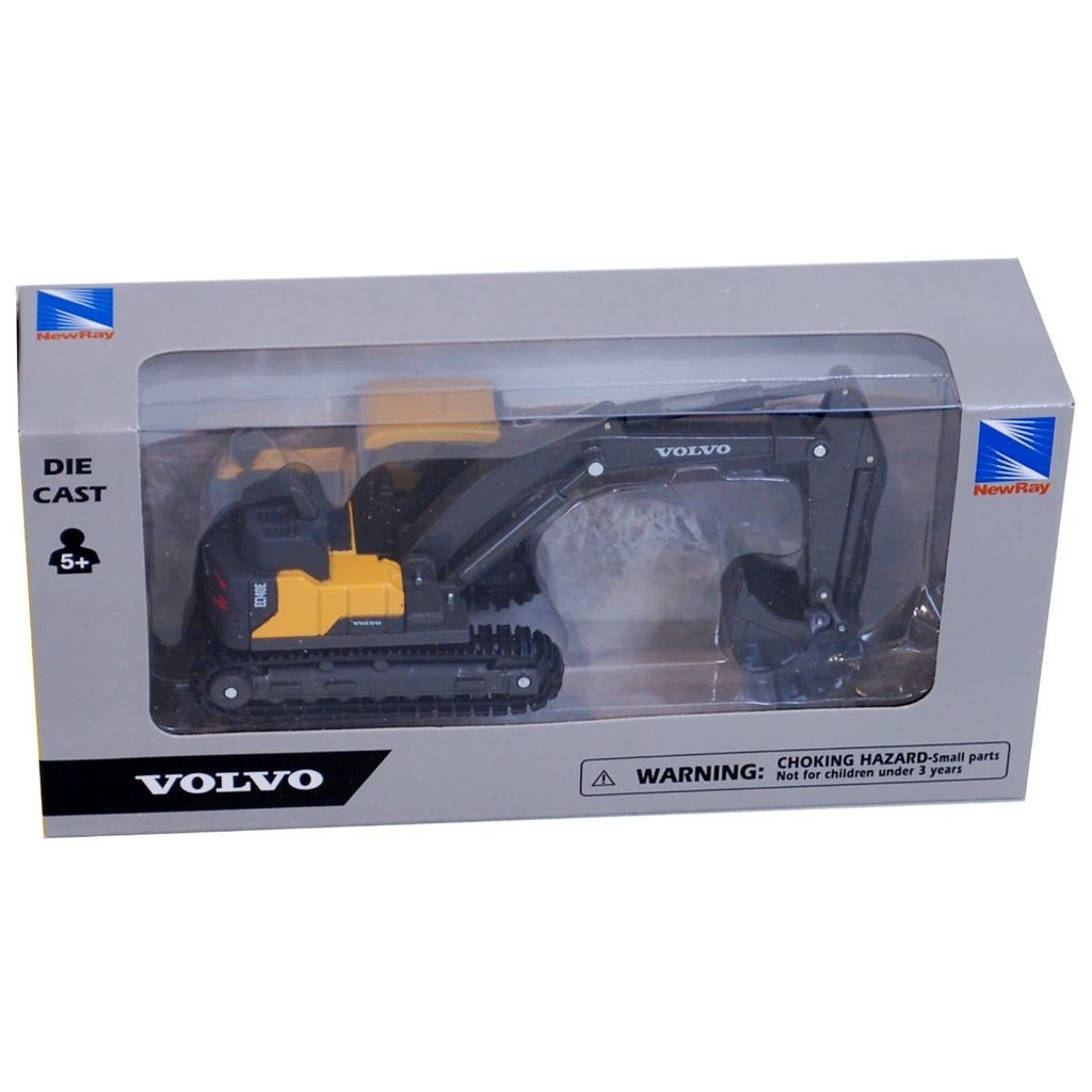 Leksaksgrävmaskin i form av en Volvo EC140E från leksakstillverkaren NewRay.