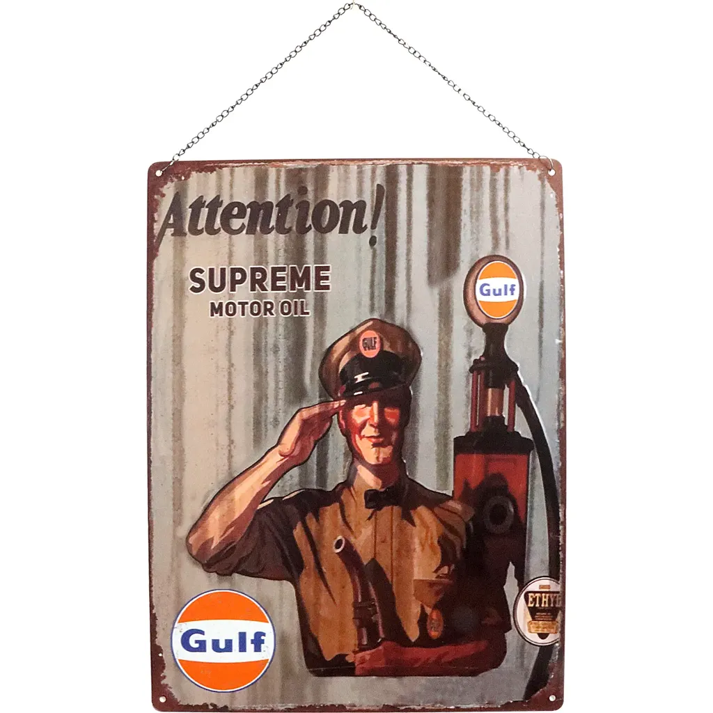 Gulf Plåtskylt med Bensinpump - 40 x 30 cm