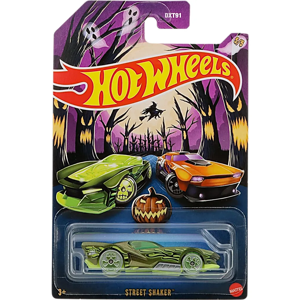 Fem leksaksbilar från Hot Wheels och serien Halloween Series.
