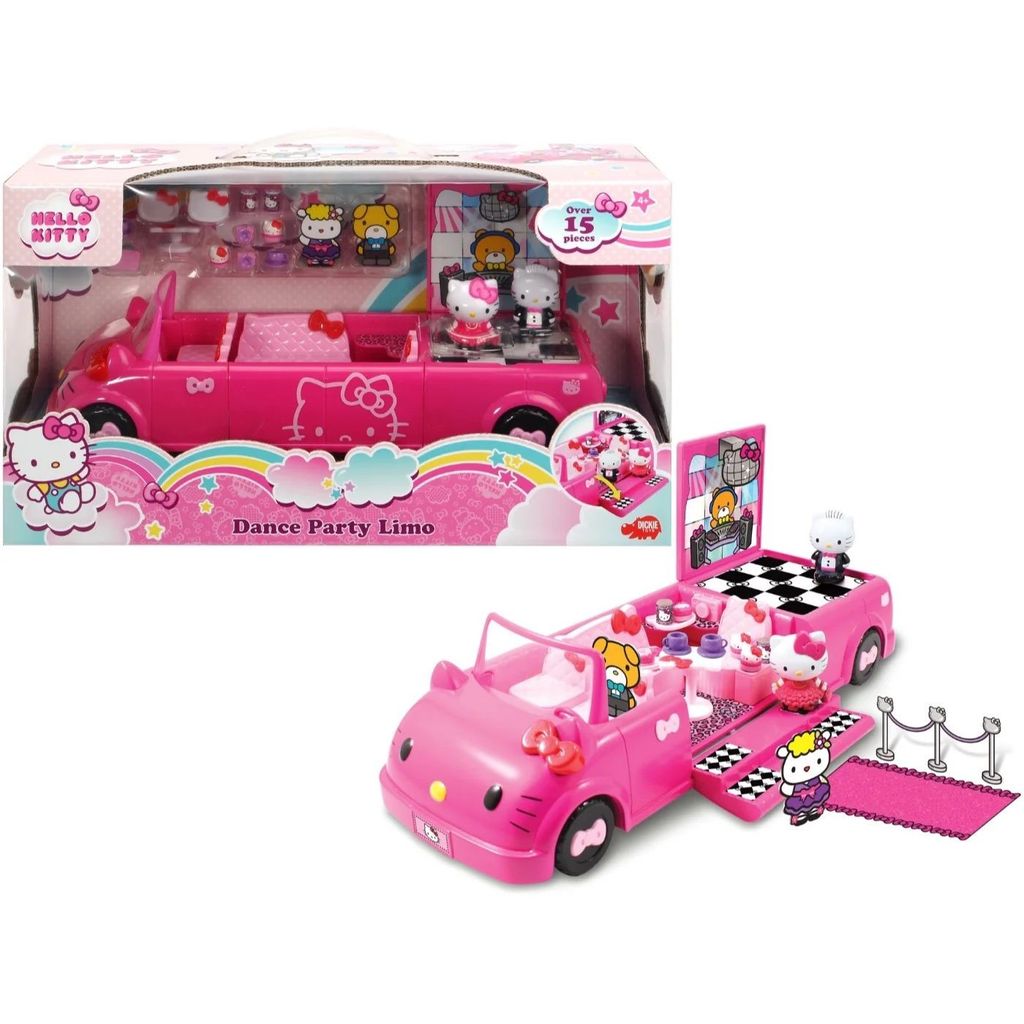 Hello Kitty Dance Party Limo från Dickie Toys är en partylimousine med över 15 tillbehör. Limons sidodörr går att fälla ned till en trappa och bagageutrymmet blir dansgolv.