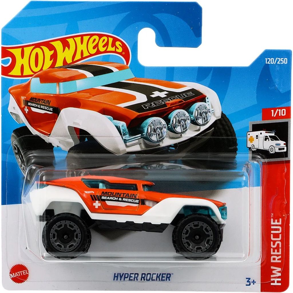 Hyper Rocker från Hot Wheels och serien HW Rescue där denna leksaksbil är bil nummer 1/10. Bilen är nummer 120/250 från 2022 och har ett short card (5785).