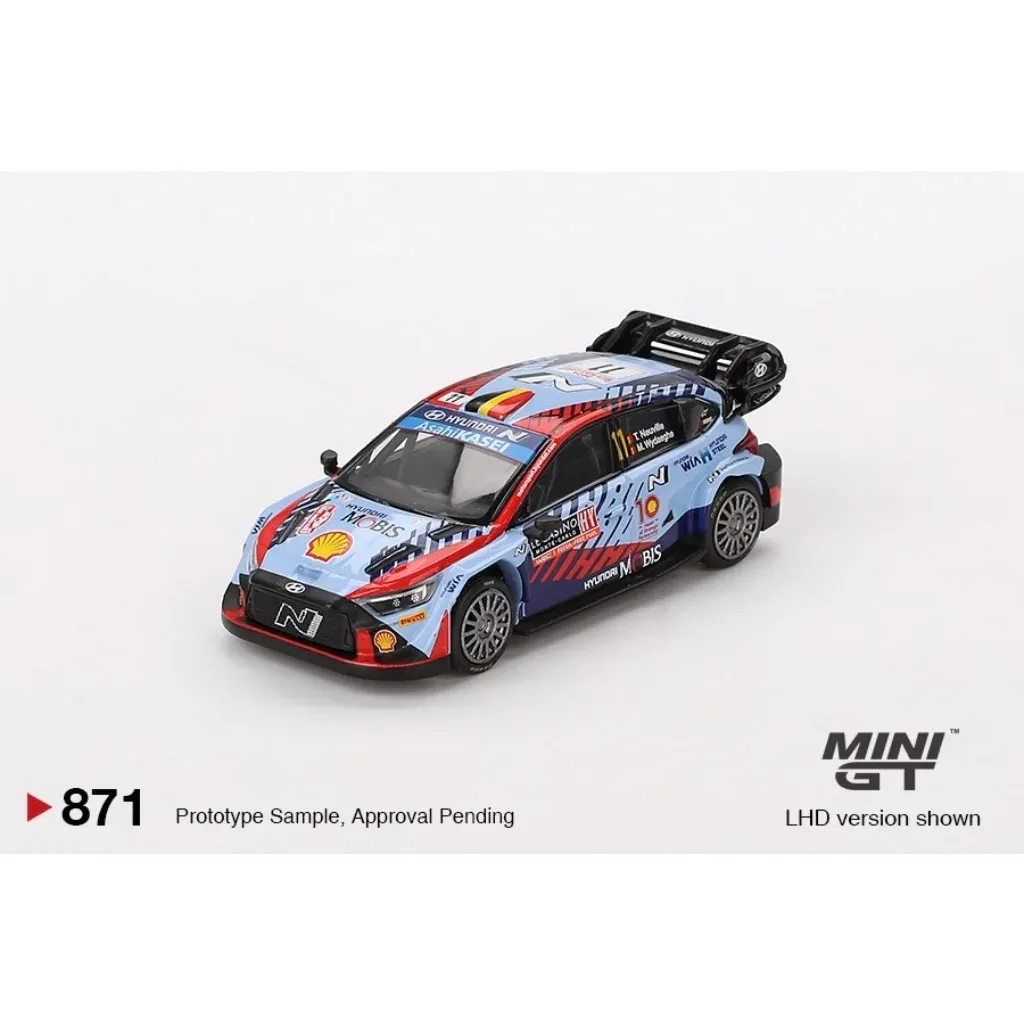 Hyundai i20 N Rally1 Hybrid #11 2024 Monte-Carlo Winner som modell från Mini GT i skala 1:64 (ca 7 cm).