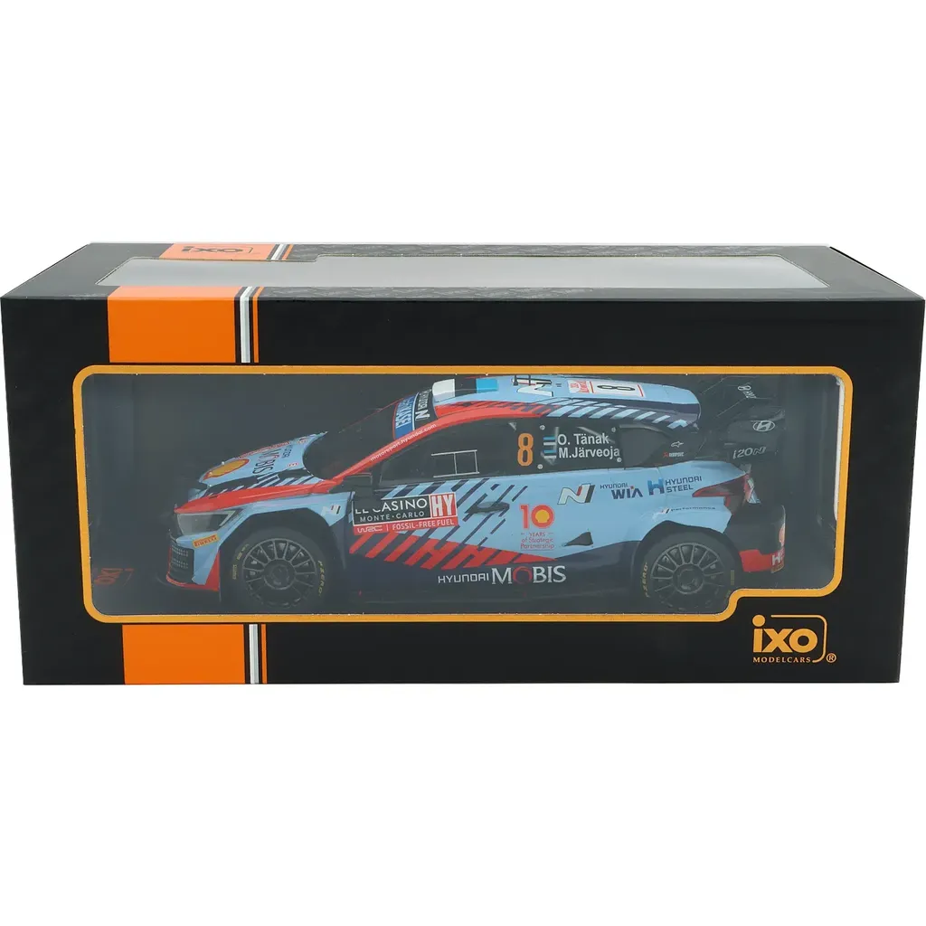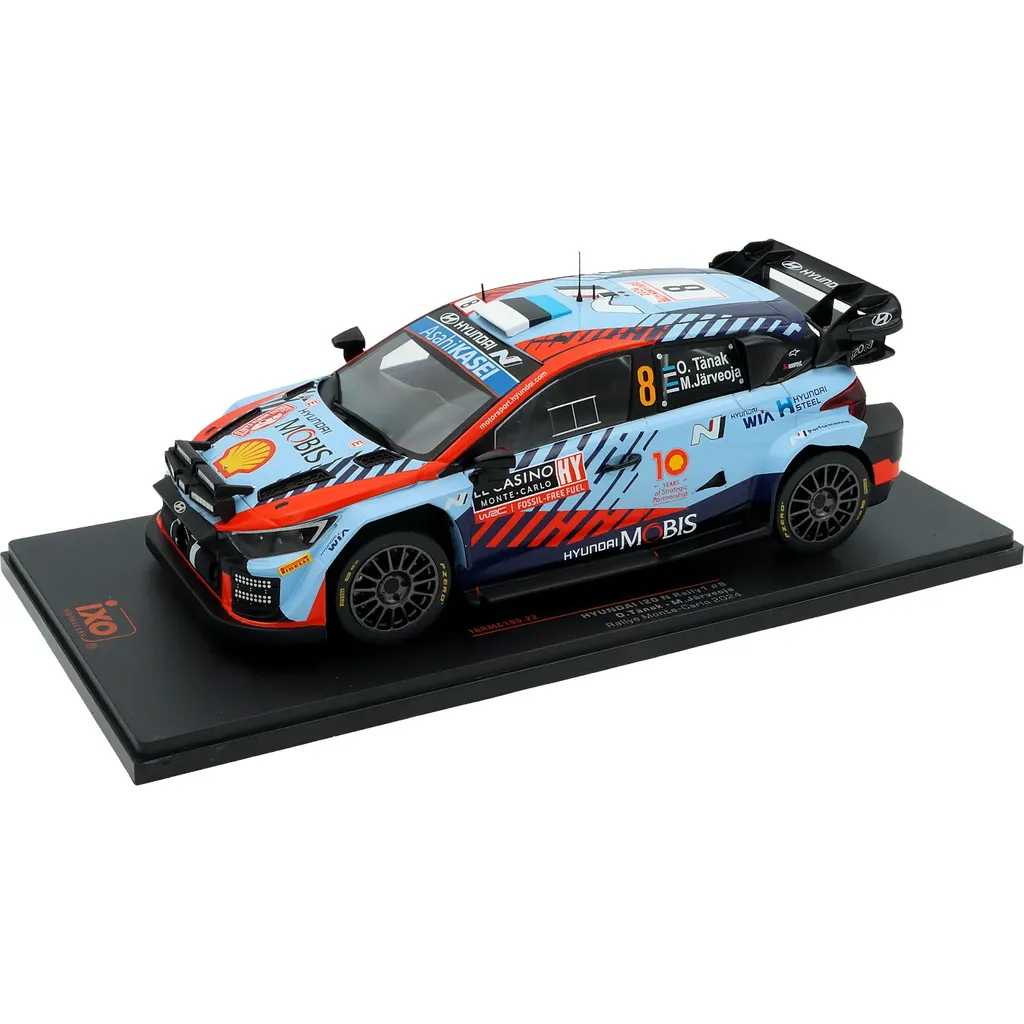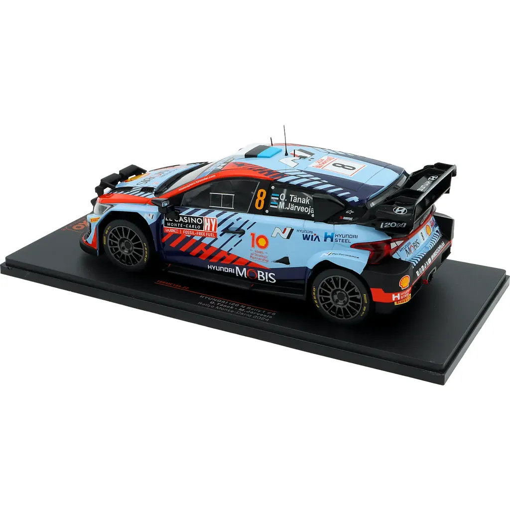 WRC-rallybilen Hyundai i20N Rally1 med nummer 8 som kördes av Tänak och Järveoja under Rallye Monte-Carlo 2024. Modellen är tillverkad av Ixo Models i skala 1:18 (23 cm).