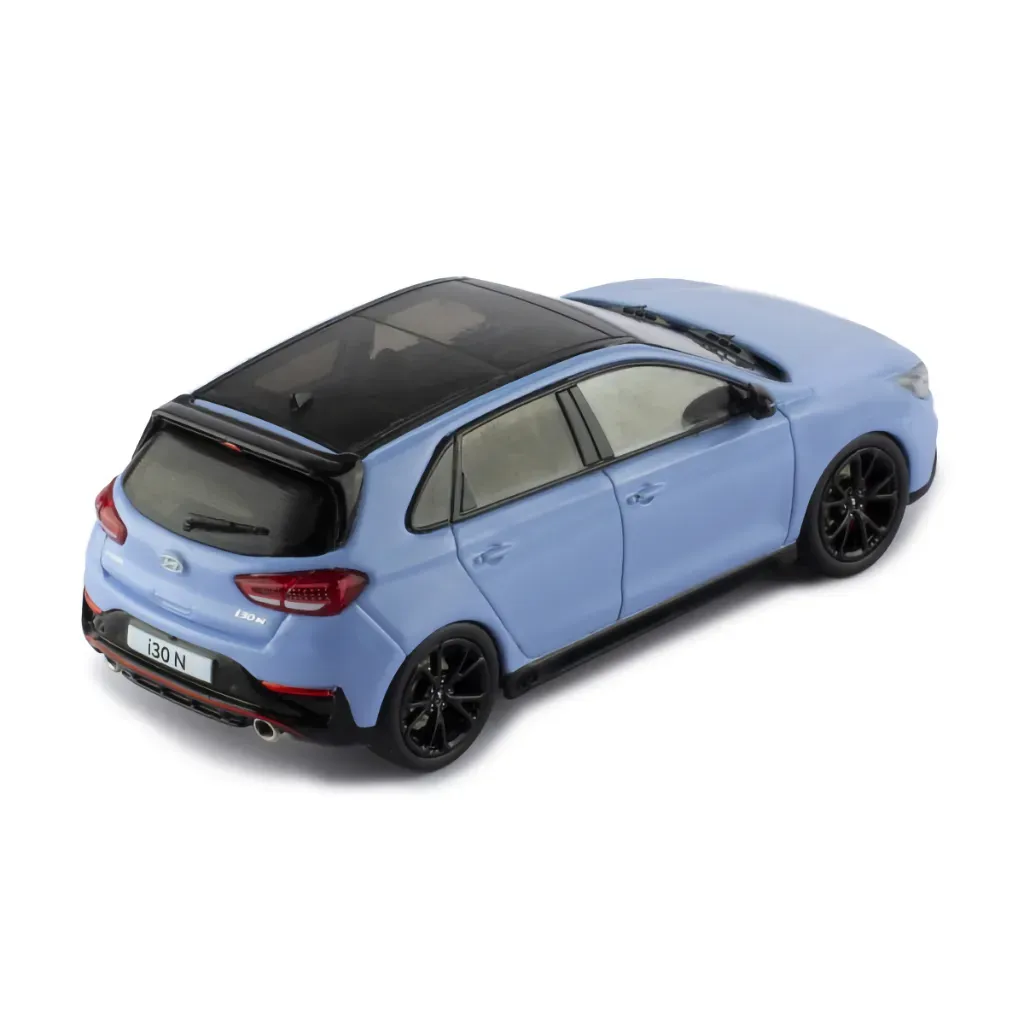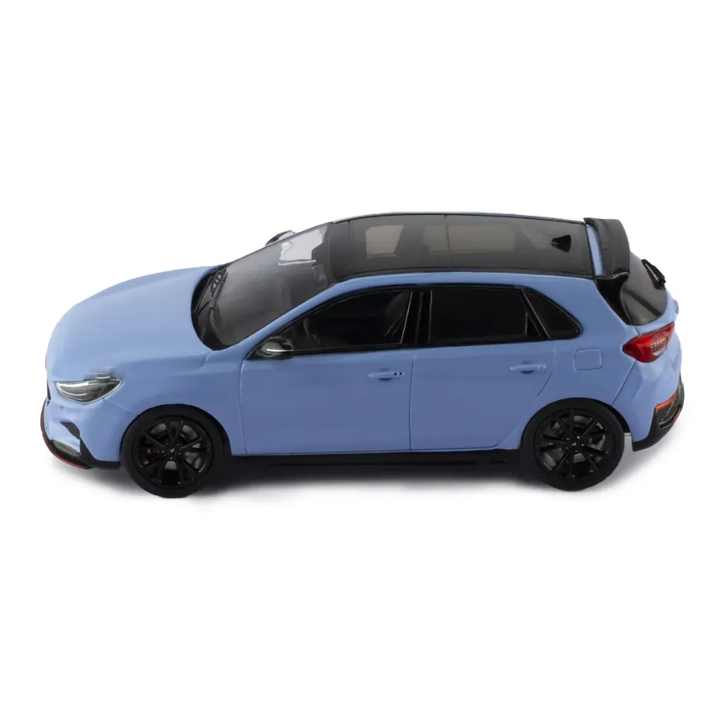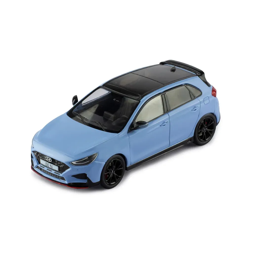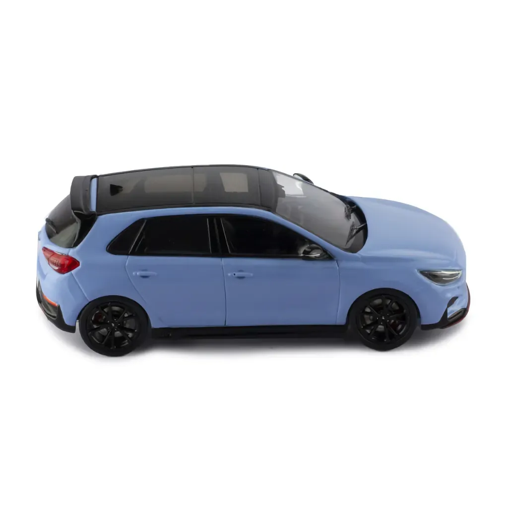 Hyundai i30 N, årsmodell 2022, i ljusblått som modellbil från Ixo Models i skala 1:43 (10 cm).
