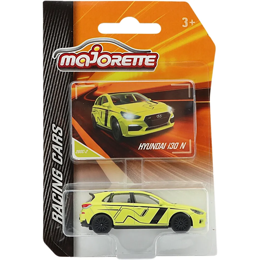 Hyundai i30 N från Majorette och serien Racing Cars. Bilen är 7,2 cm (skala 1:64) och tillverkad i metall med plastdetaljer.