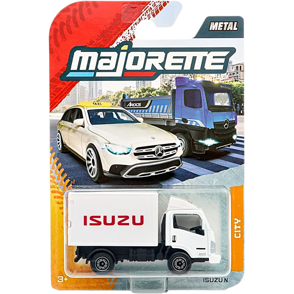 Isuzu NPR från Majorette och serien City Premium Cars. Lastbilen är ca 7 cm (skala 1:60) lång och tillverkad i metall med plastdetaljer.