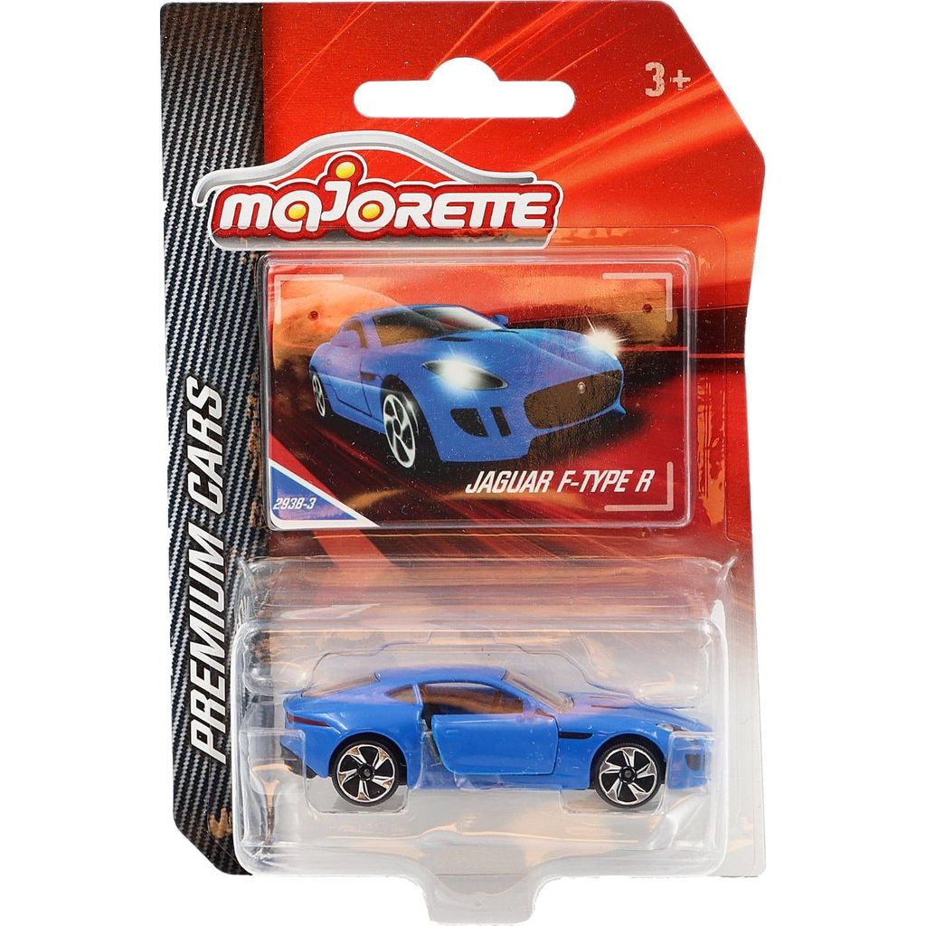 Blå Jaguar F-Type R i skala 1:59 från Majorettes serie Premium Cars.
