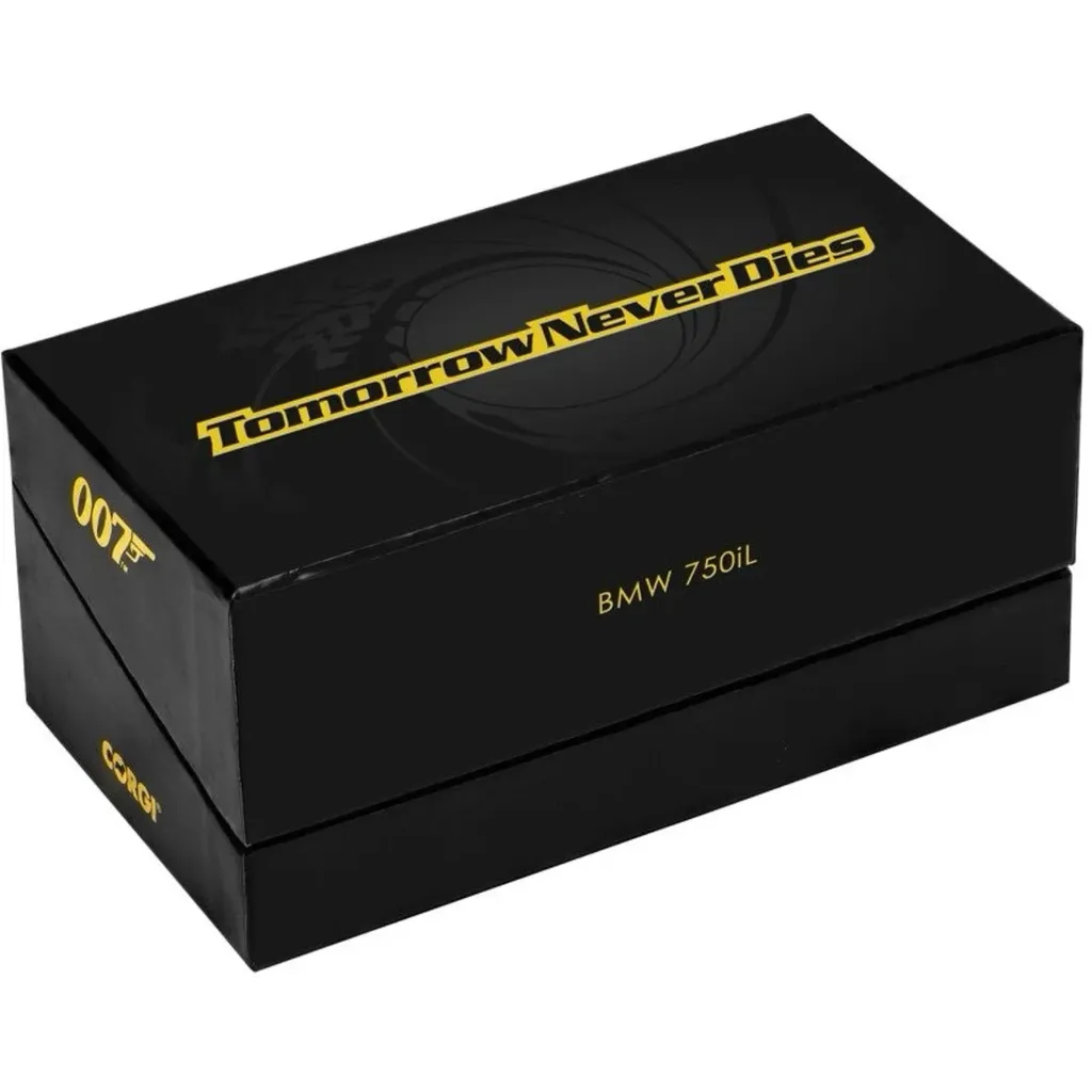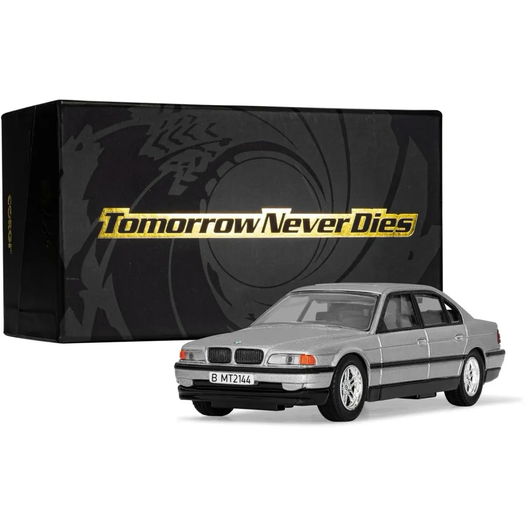 BMW 750iL från James Bond-filmen Tomorrow Never Dies. Modellbilen är i skala 1:36 (12,5 cm) och tillverkad av Corgi.