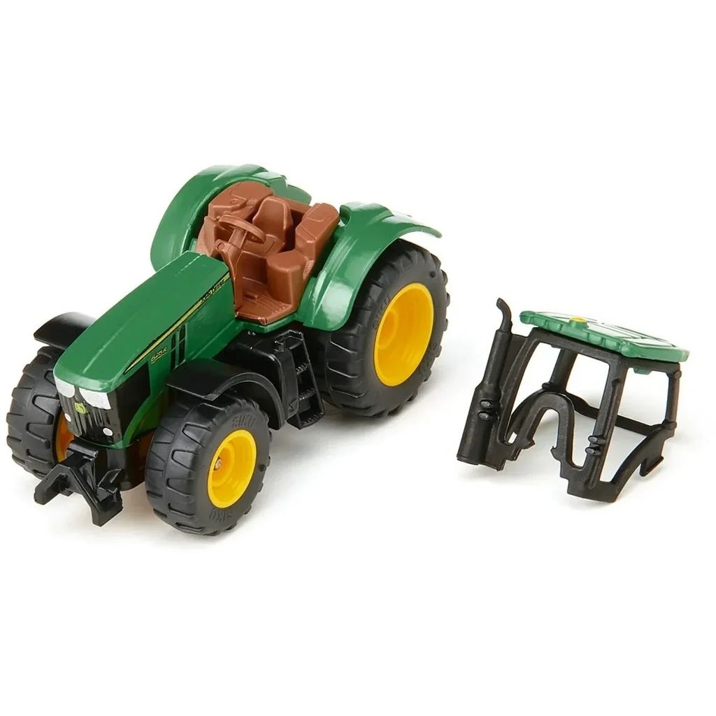 John Deere 6215R från Siku. Liten (6 cm) leksakstraktor med gummidäck.