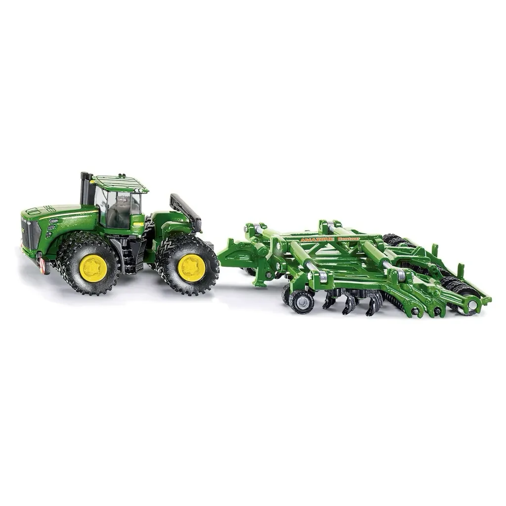 Traktorn John Deere 9630 med kultivatorn Amazone Centaur som leksaksmodell från Siku i skala 1:87 (19 cm).