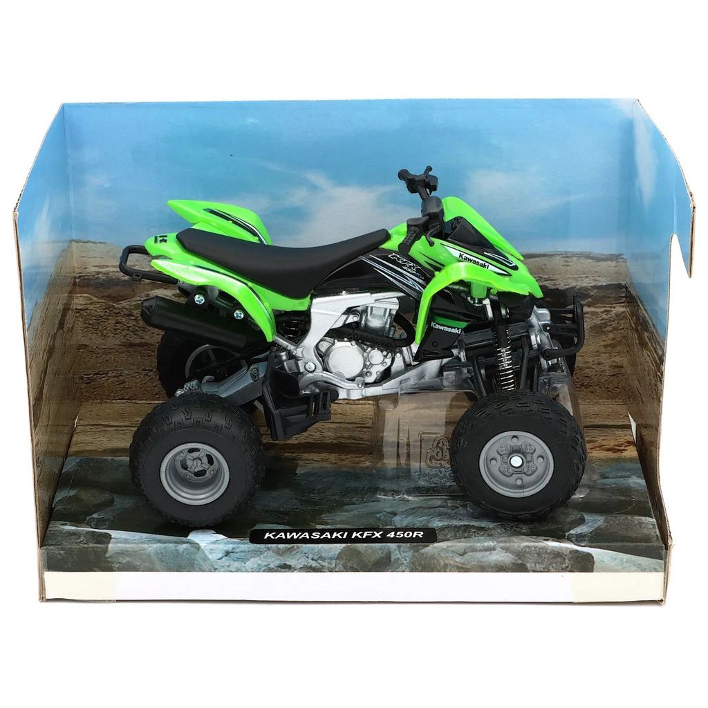 Grön Kawasaki 450R, fyrhjuling / ATV, från NewRay i skala 1:12 (längd 15 cm).