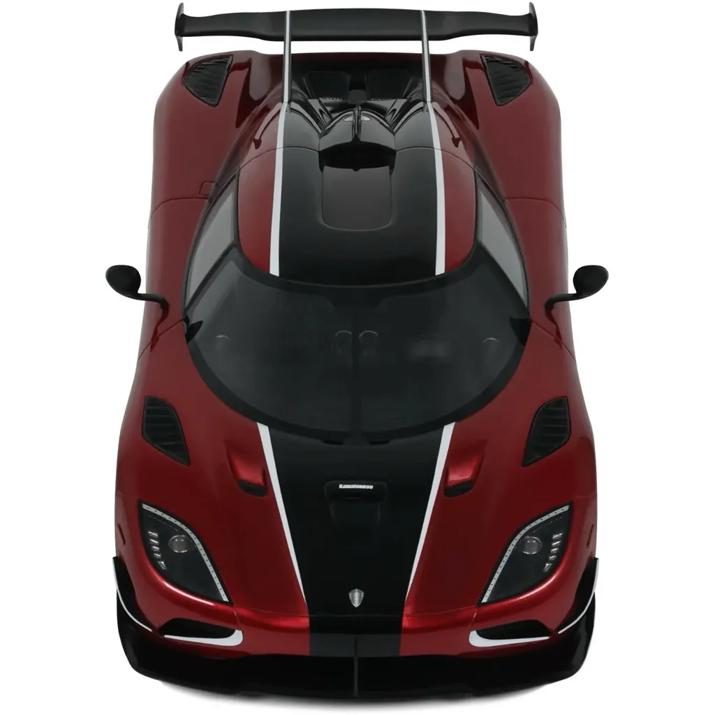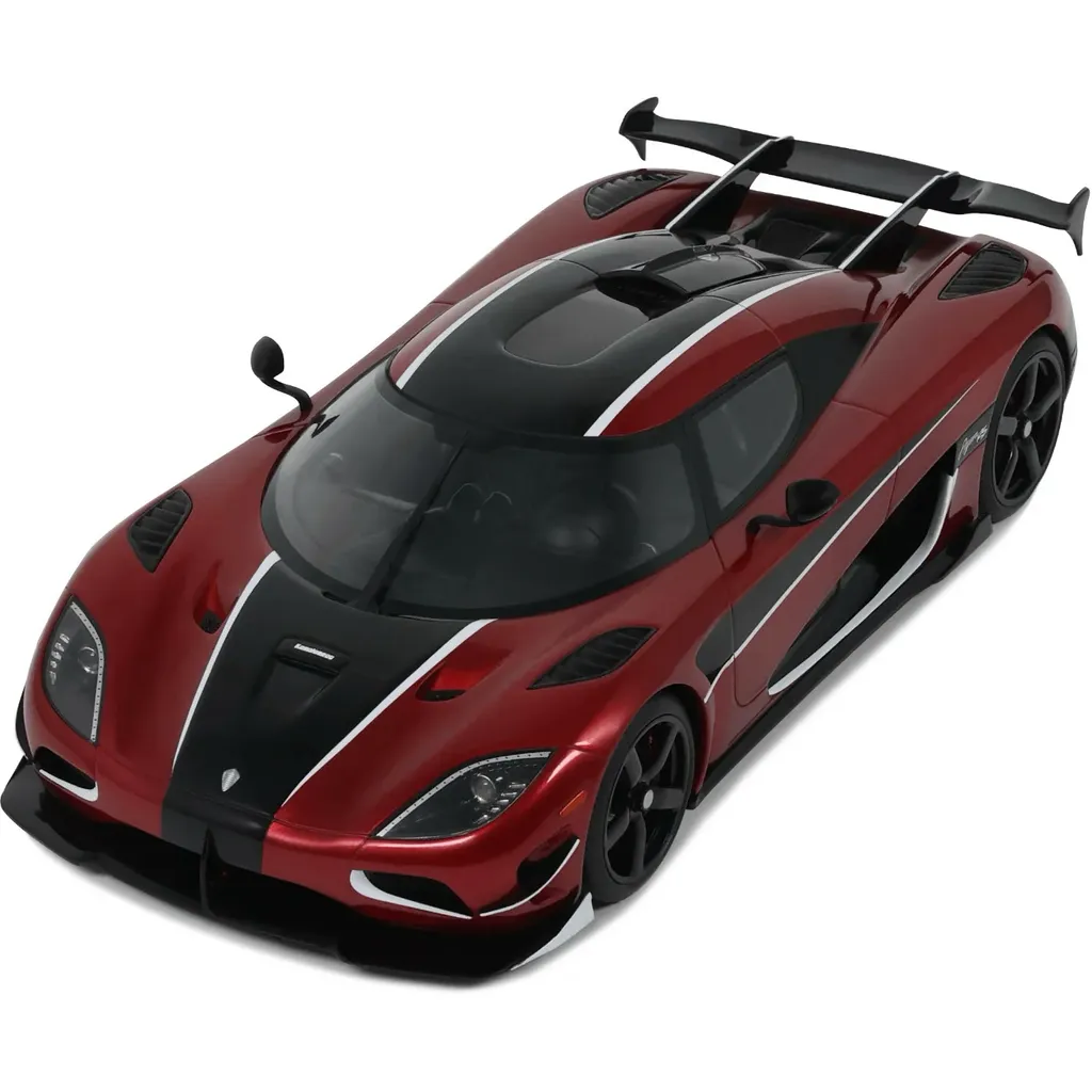 Koenigsegg Agera RS i en djupröd lack med svarta detaljer. Modellen är tillverkad av GT Spirit i skala 1:18 (24 cm).